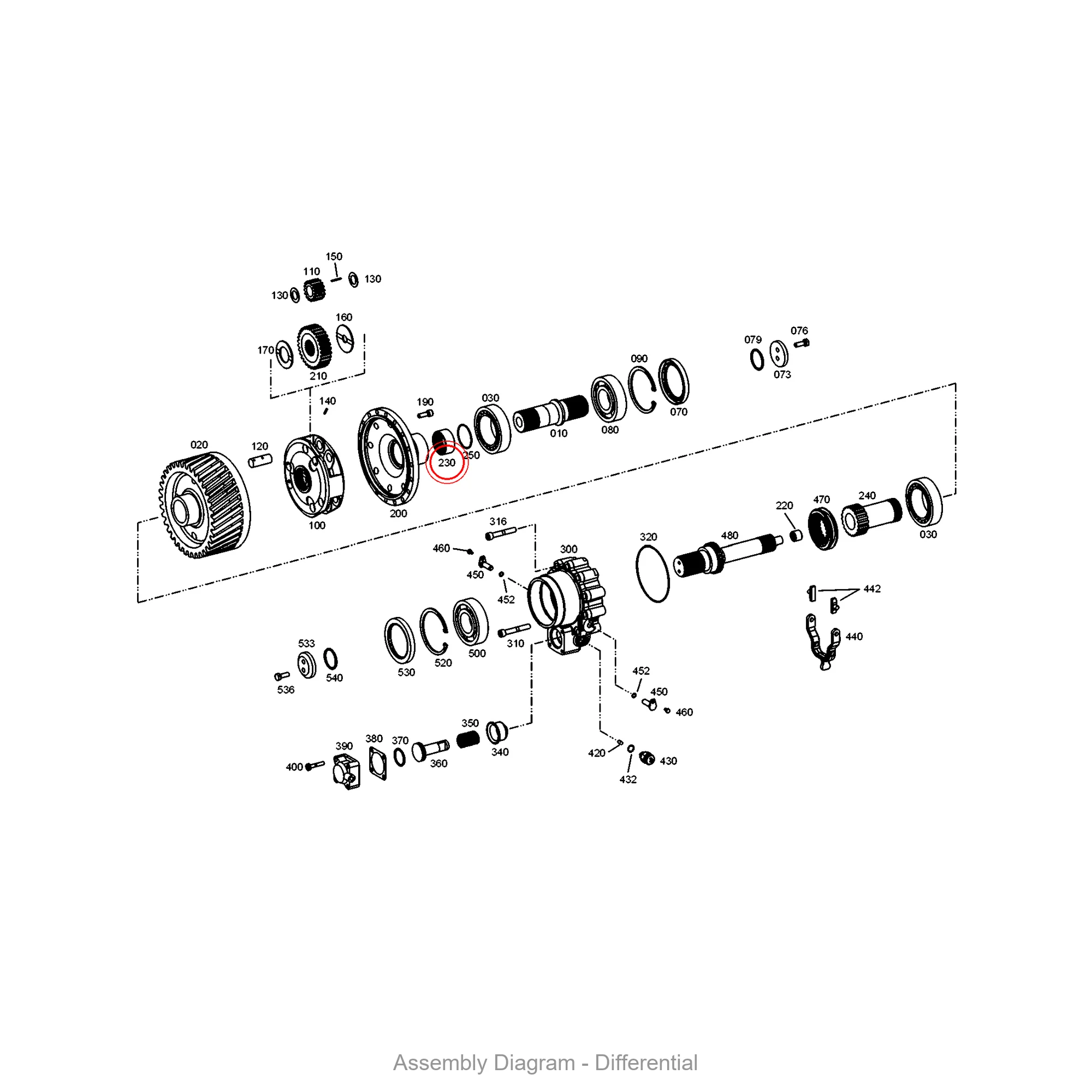 This needle sleeve is located in the differential area of the transmission. It appears in 30 different assembly configurations. In the service manual, look for position number 230 in the Differential section.