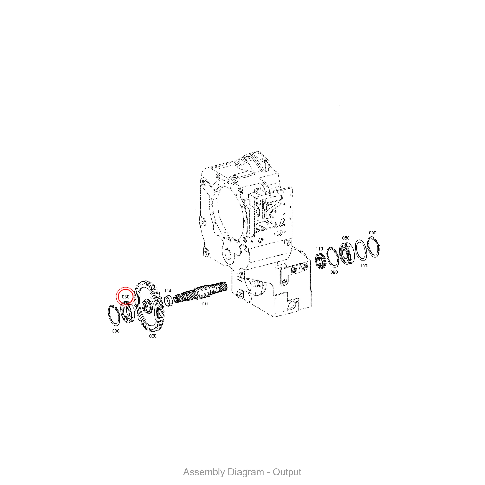 This cylinder roller bearing is located in the output area of the transmission. It appears in 30 different assembly configurations. In the service manual, look for position number 03.030 in the Output section.