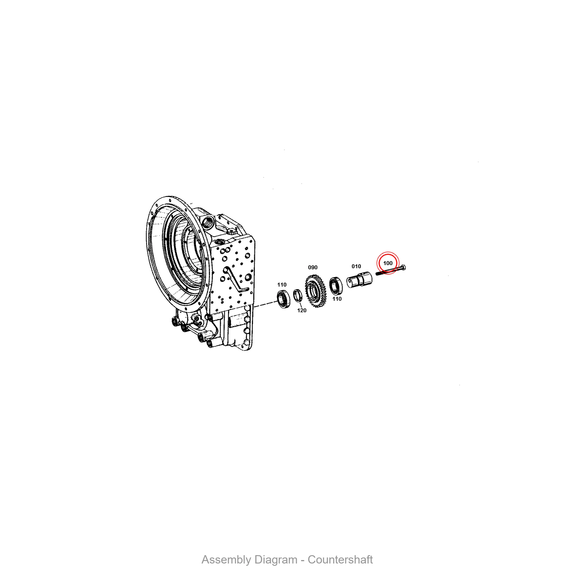 This hexagon screw is located in the countershaft area of the transmission. It appears in 30 different assembly configurations. In the service manual, look for position number 100 in the Countershaft section.