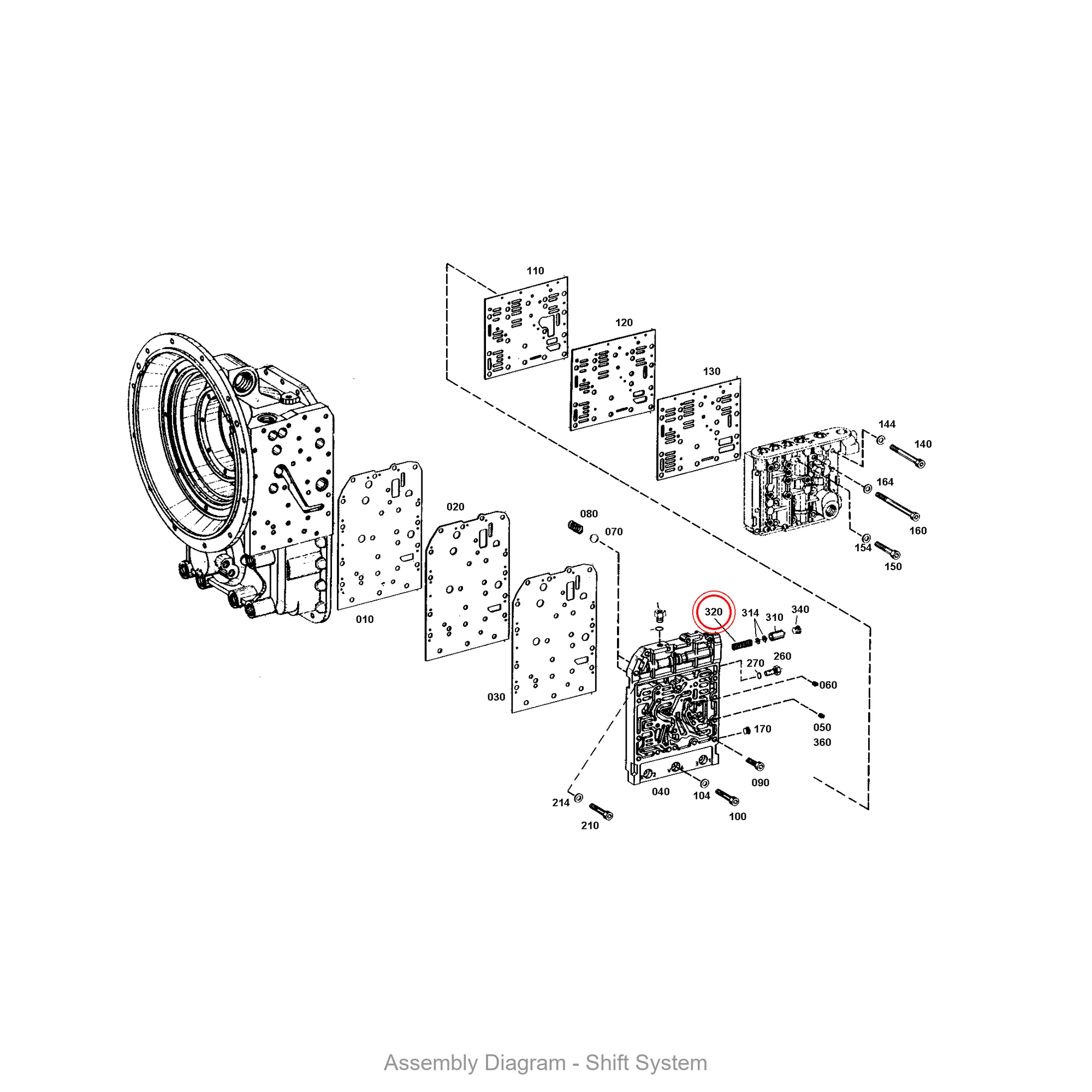 This compression spring is located in the shift system area of the transmission. It appears in 30 different assembly configurations. In the service manual, look for position number 320 in the Shift System section.