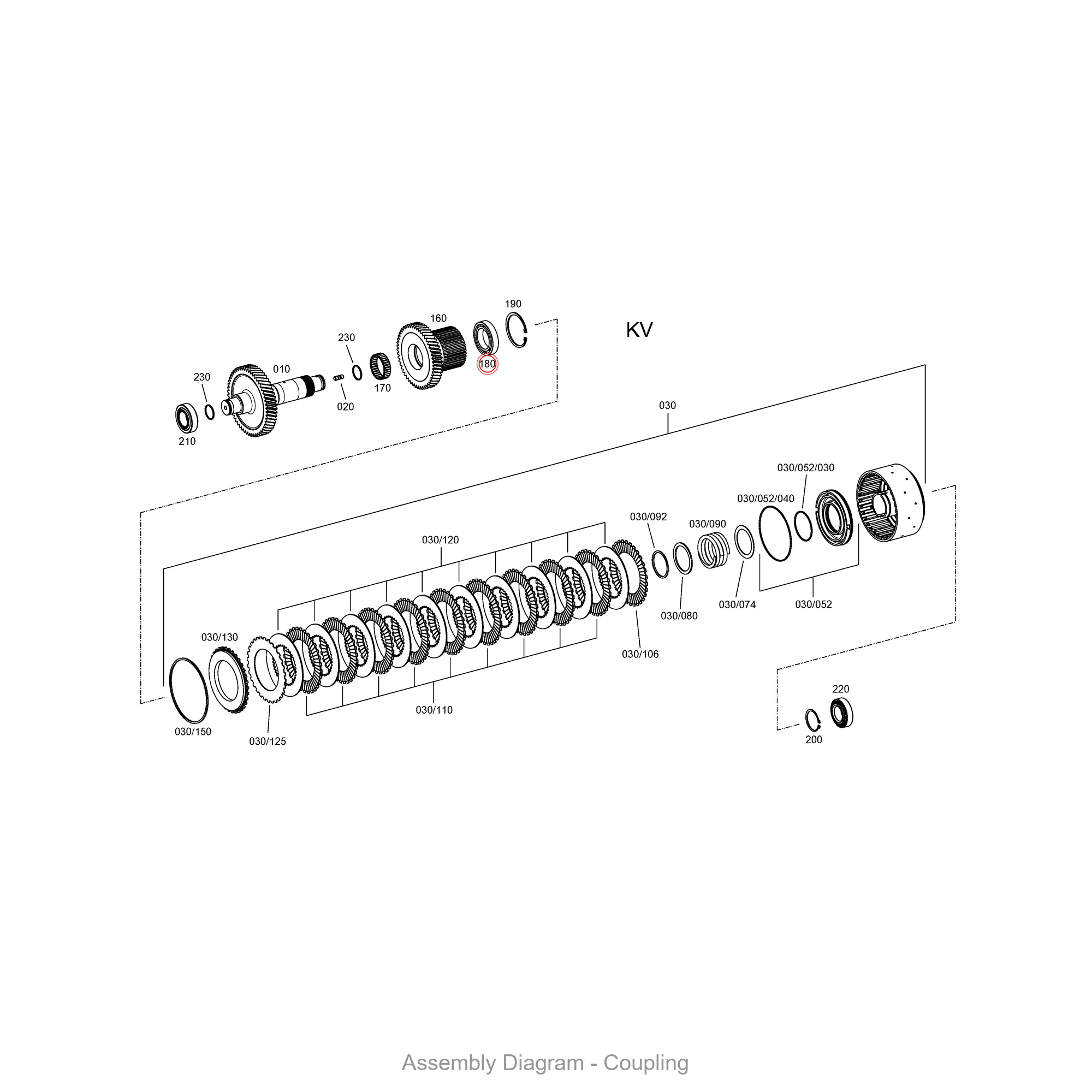 This ball bearing is located in the coupling area of the transmission. It appears in 15 different assembly configurations. In the service manual, look for position number 180 in the Coupling section.