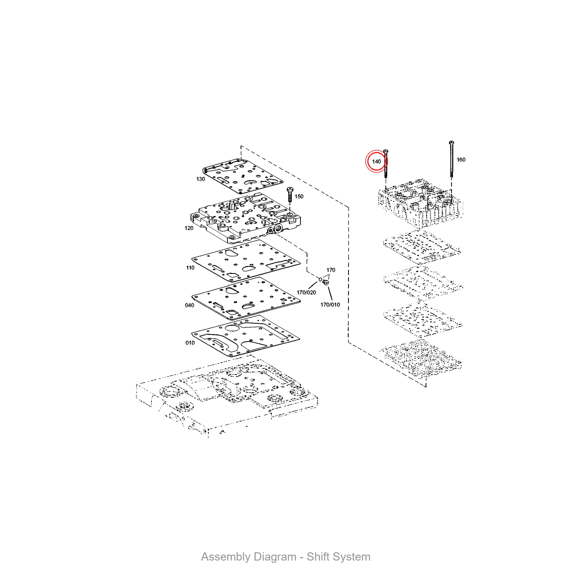 This torx screw is located in the shift system area of the transmission. It appears in 26 different assembly configurations. In the service manual, look for position number 140 in the Shift System section.