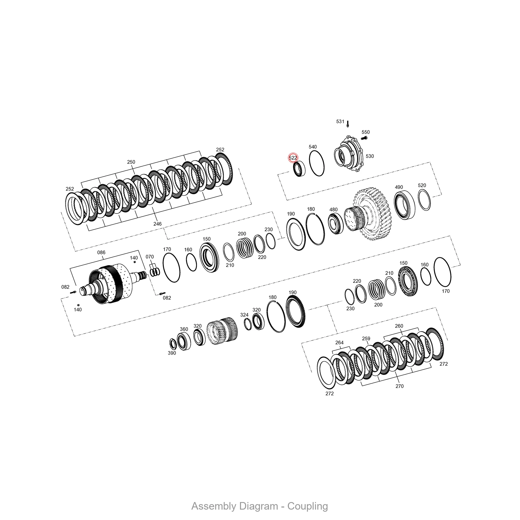 This 滚柱轴承 is located in the coupling area of the transmission. It appears in 30 different assembly configurations. In the service manual, look for position number 522 in the Clutch section.