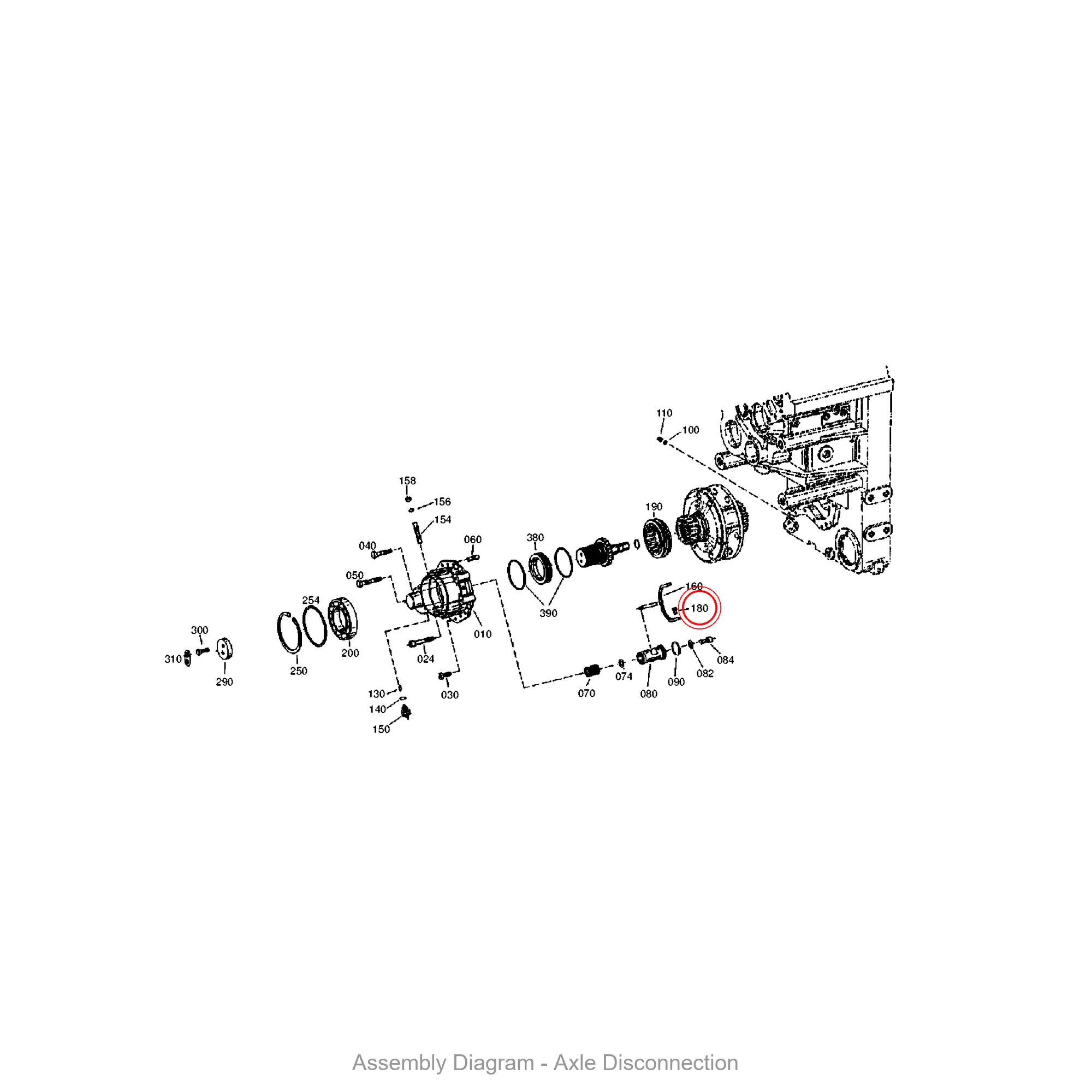 This sliding pad is located in the axle disconnection, axle drive, axle housing area of the transmission. It appears in 30 different assembly configurations. In the service manual, look for position number 180 in the Axle Disconnection section.