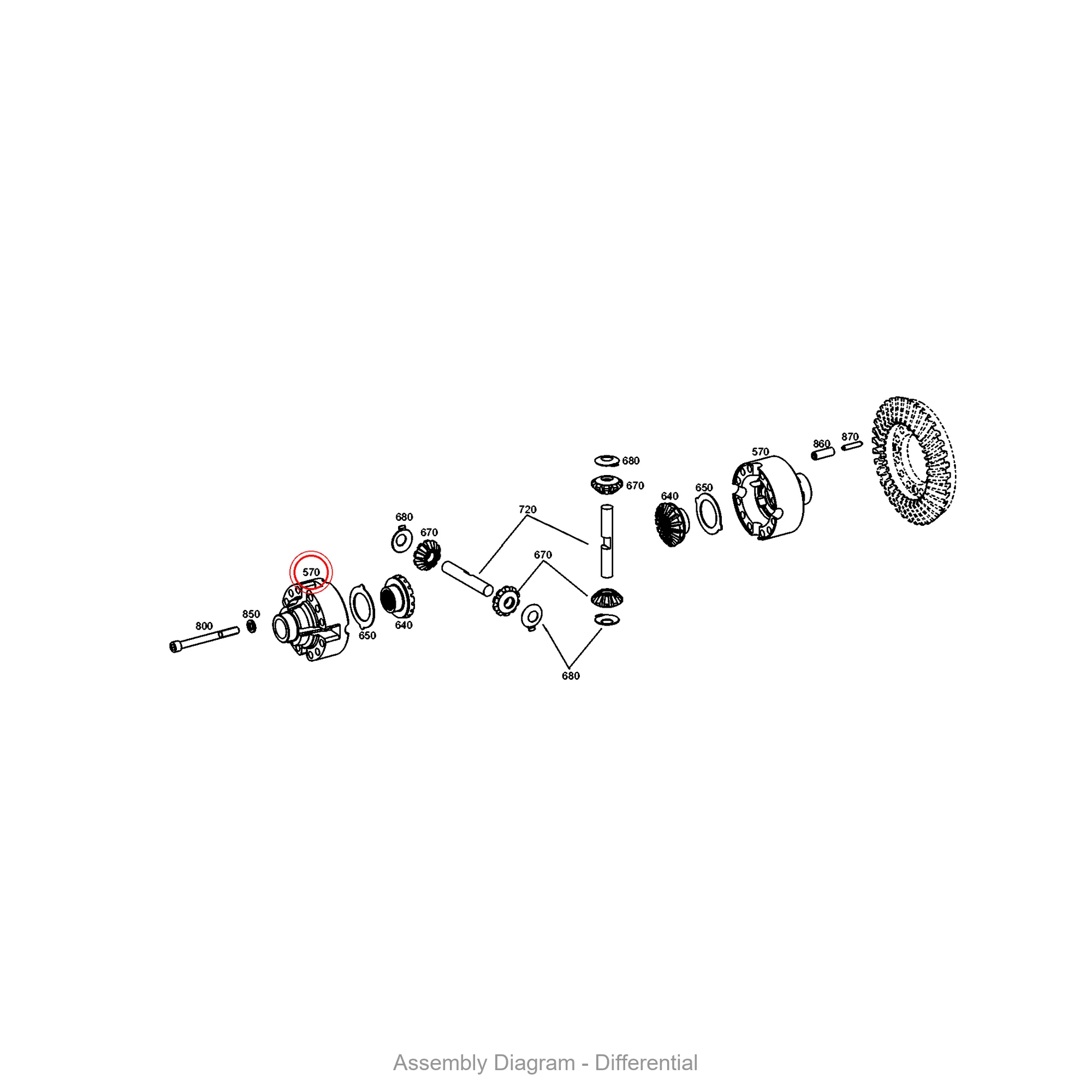 This diff.case is located in the differential area of the transmission. It appears in 10 different assembly configurations. In the service manual, look for position number 570 in the Differential section.