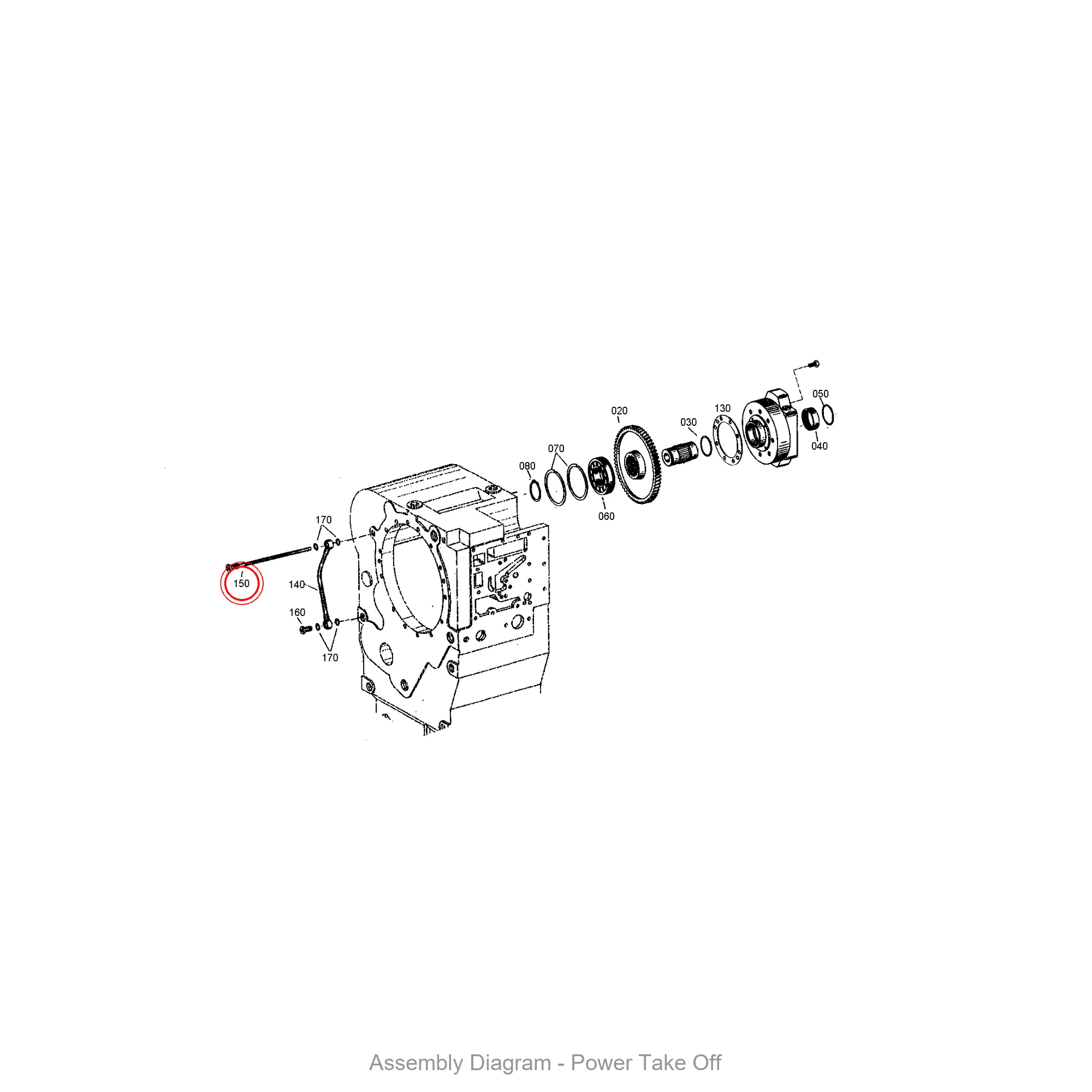 This spray tube is located in the power take off area of the transmission. It appears in 30 different assembly configurations. In the service manual, look for position number 150 in the Power Take Off section.