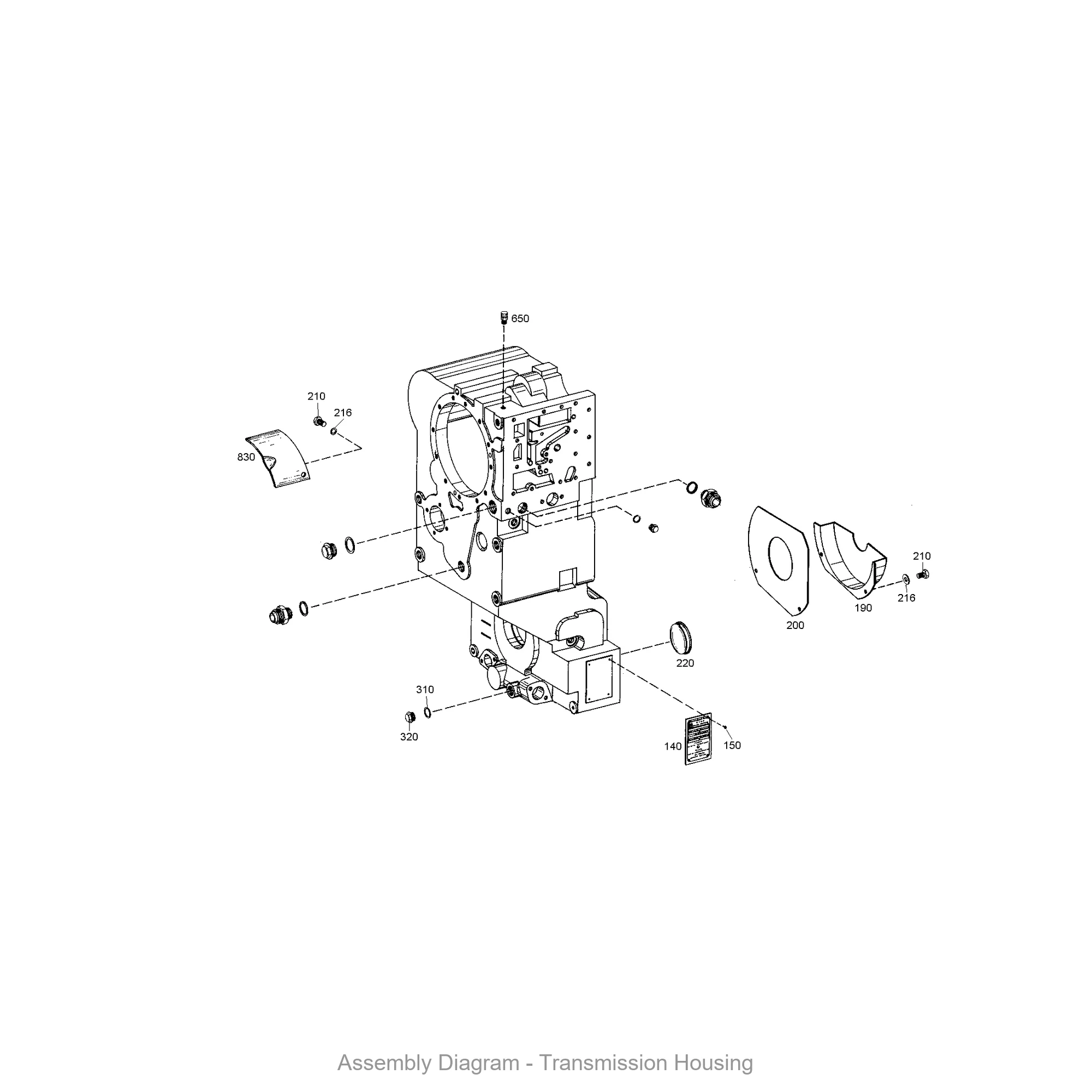 This transmission housing is located in the transmission housing area of the transmission. It appears in 2 different assembly configurations. In the service manual, look for position number 010 in the Transmission Housing section.