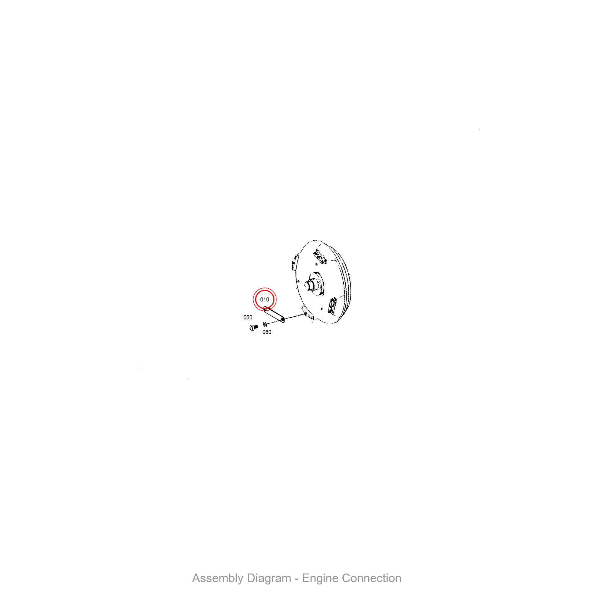 This shackle is located in the engine connection area of the transmission. It appears in 7 different assembly configurations. In the service manual, look for position number 010 in the Engine Connection section.
