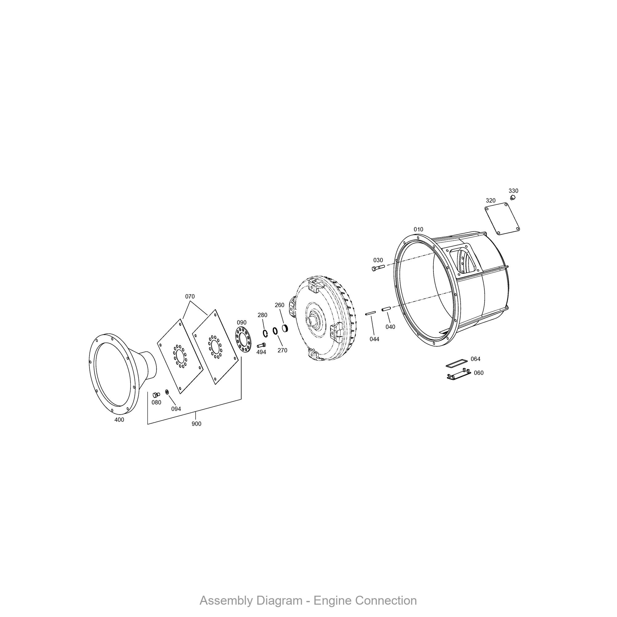 This engine connection is found in 4 ZF transmission variants, including: 4 WG 200, 4 WG 200(555/5), 4 WG 208, 6 WG 200. These transmissions are commonly used in wheel loaders, graders, and other heavy construction equipment. Contact us to verify fitment for your specific machine.