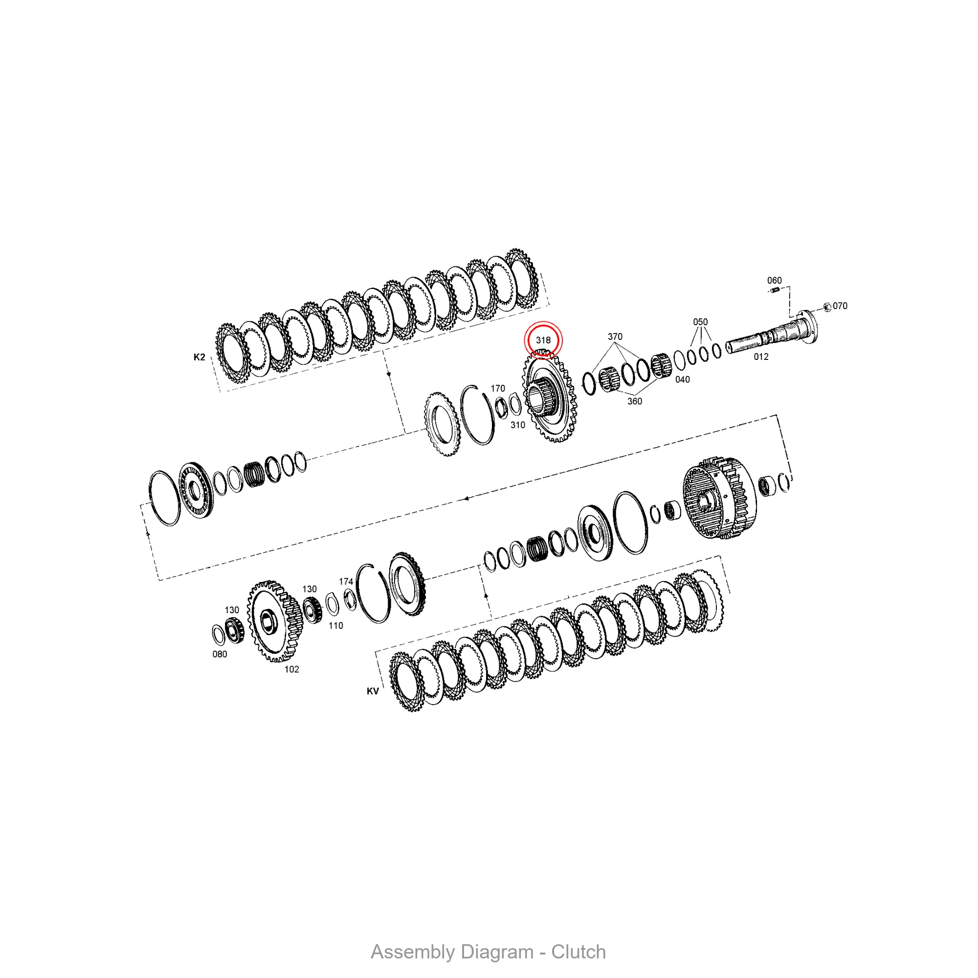 This spur gear is located in the clutch, coupling area of the transmission. It appears in 26 different assembly configurations. In the service manual, look for position number 318 in the Clutch section.