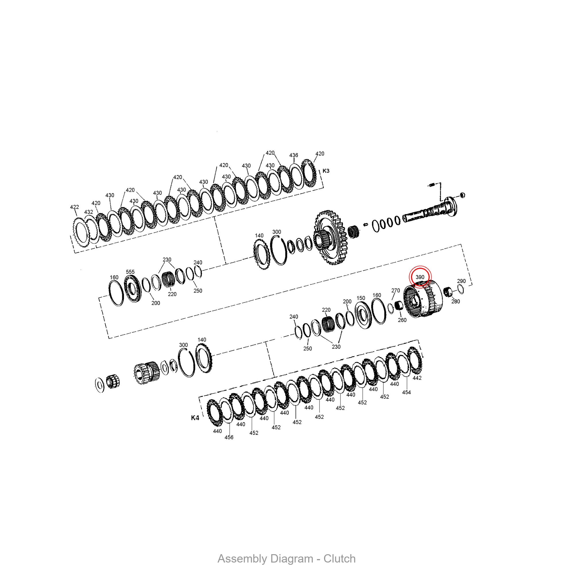 This disc carrier is located in the clutch, coupling area of the transmission. It appears in 28 different assembly configurations. In the service manual, look for position number 390 in the Clutch section.