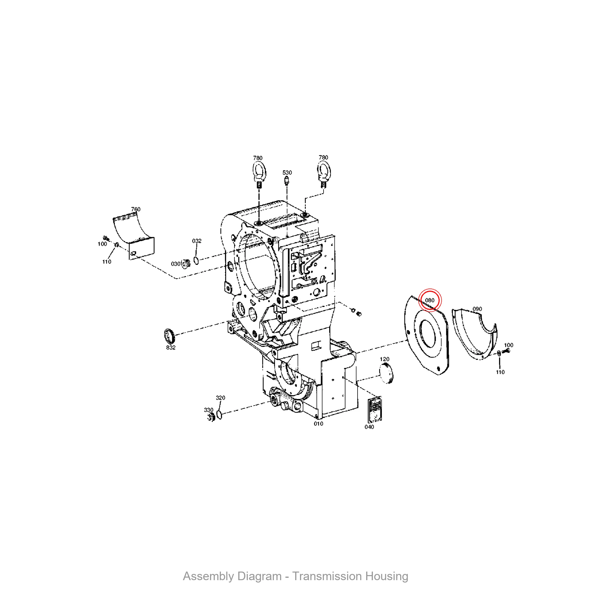 This cover plate is located in the transmission housing area of the transmission. It appears in 30 different assembly configurations. In the service manual, look for position number 01.080 in the Transmission Housing section.