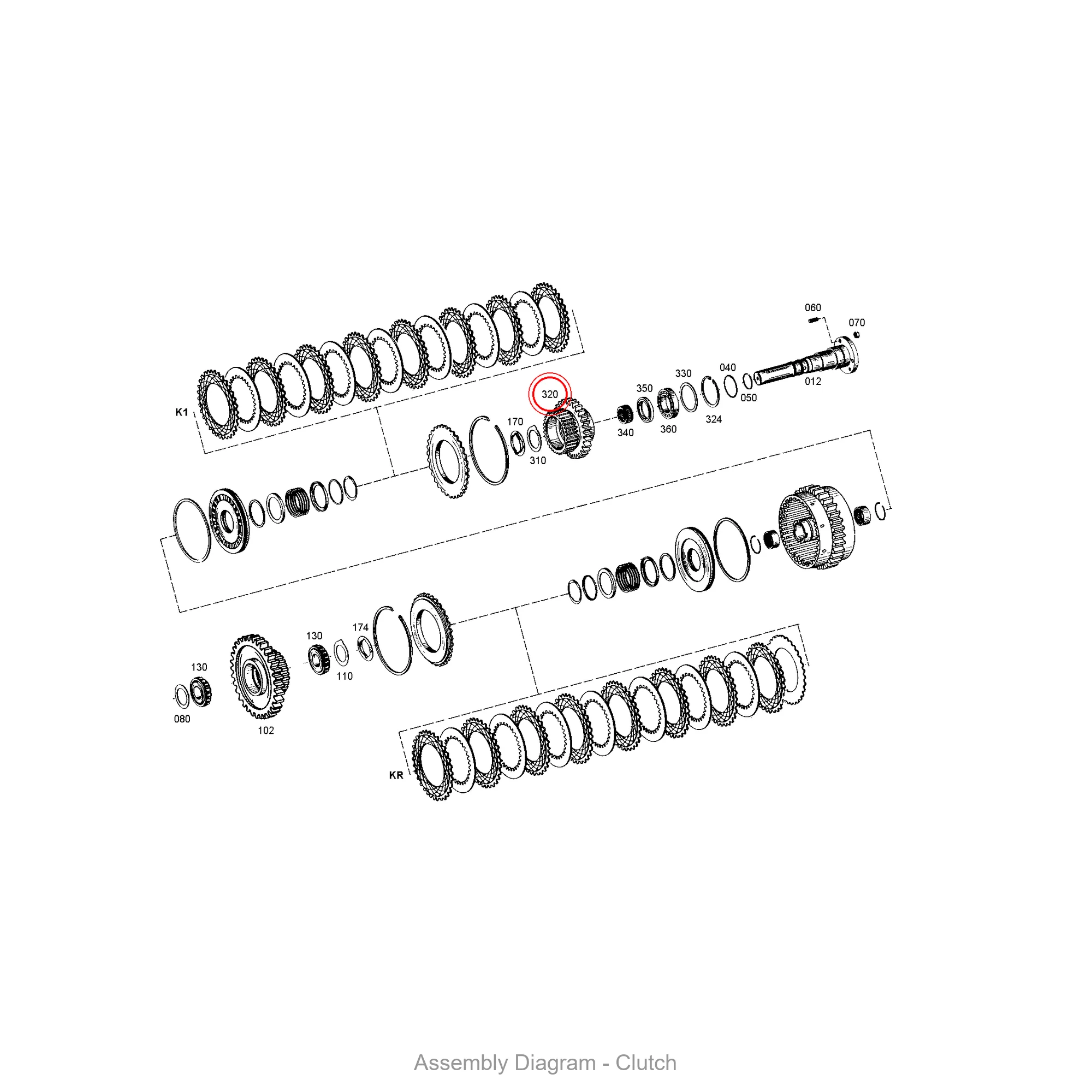 This spur gear is located in the clutch, coupling area of the transmission. It appears in 29 different assembly configurations. In the service manual, look for position number 320 in the Clutch section.