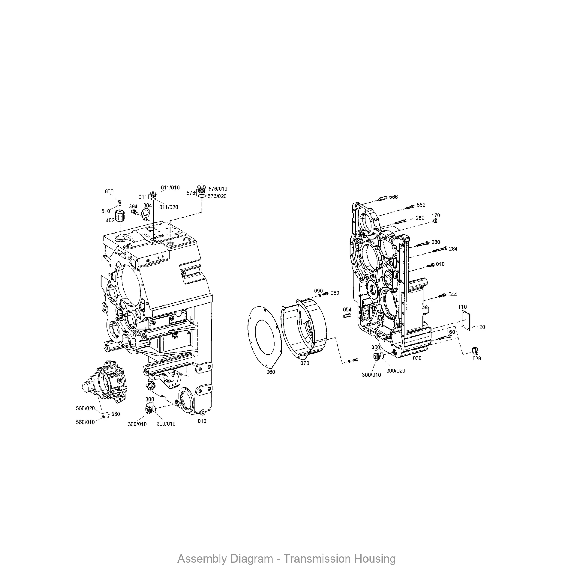 This transmission housing is located in the transmission housing area of the transmission. It appears in 2 different assembly configurations.