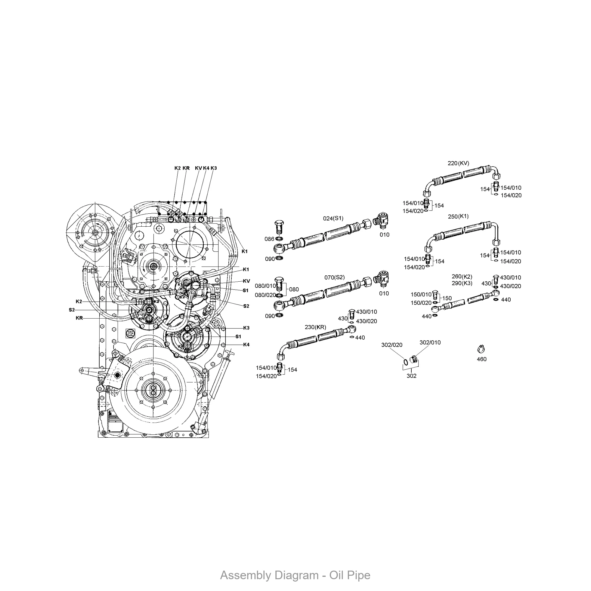 ZF 4646.121.083 is an OEM oil pipe produced by ZF Friedrichshafen AG, one of the world’s largest automotive suppliers. It is designed for use in ZF powershift transmissions, specifically in models such as 3 WG 260. This is a genuine ZF component, not an aftermarket reproduction.