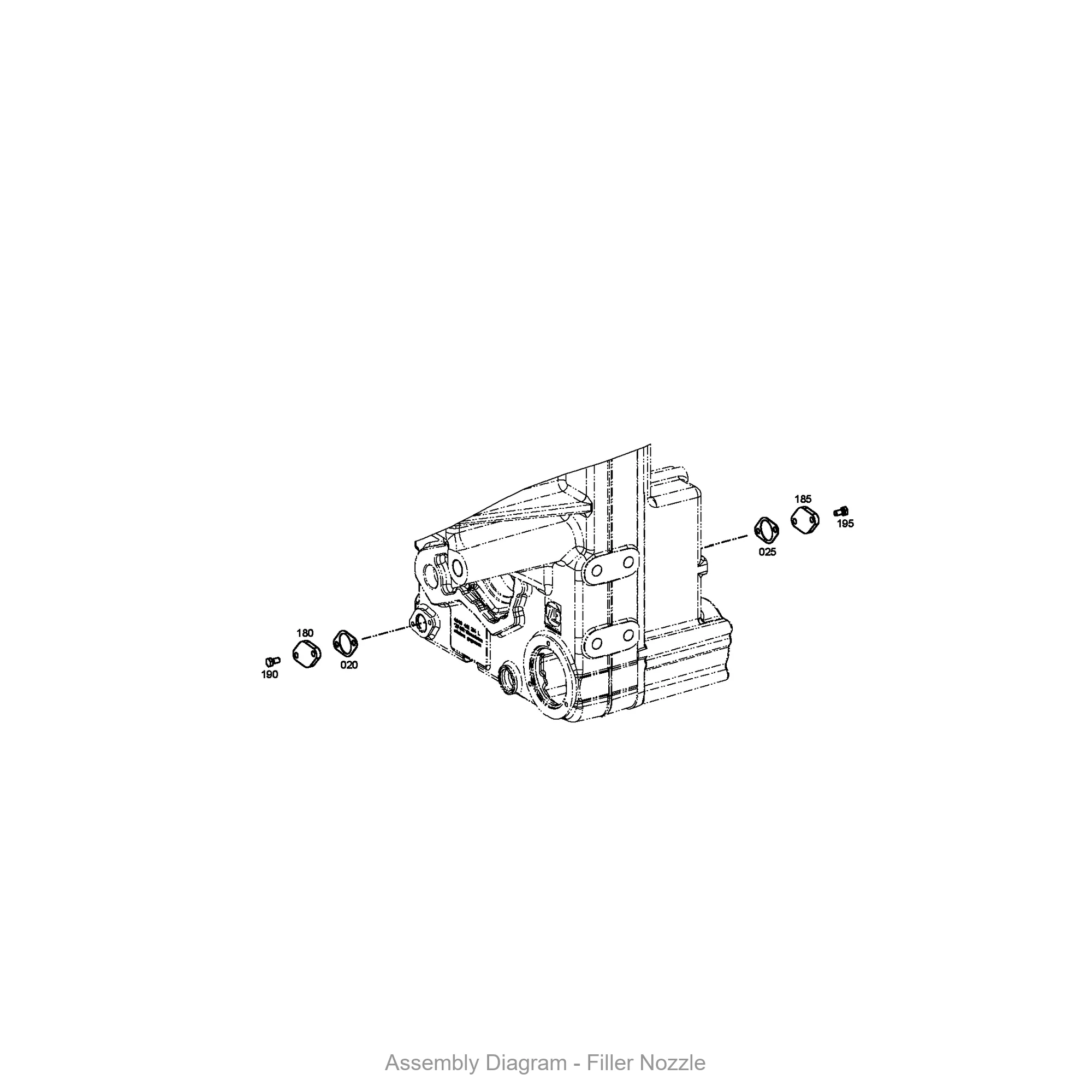 This filler nozzle is found in 8 ZF transmission variants, including: 3 WG 260, 4 WG 260, 4 WG 260(1), 4 WG 260(2), 4 WG 260(4), 4 WG 261, 5 WG 261, 5 WG 311. These transmissions are commonly used in wheel loaders, graders, and other heavy construction equipment. Contact us to verify fitment for your specific machine.