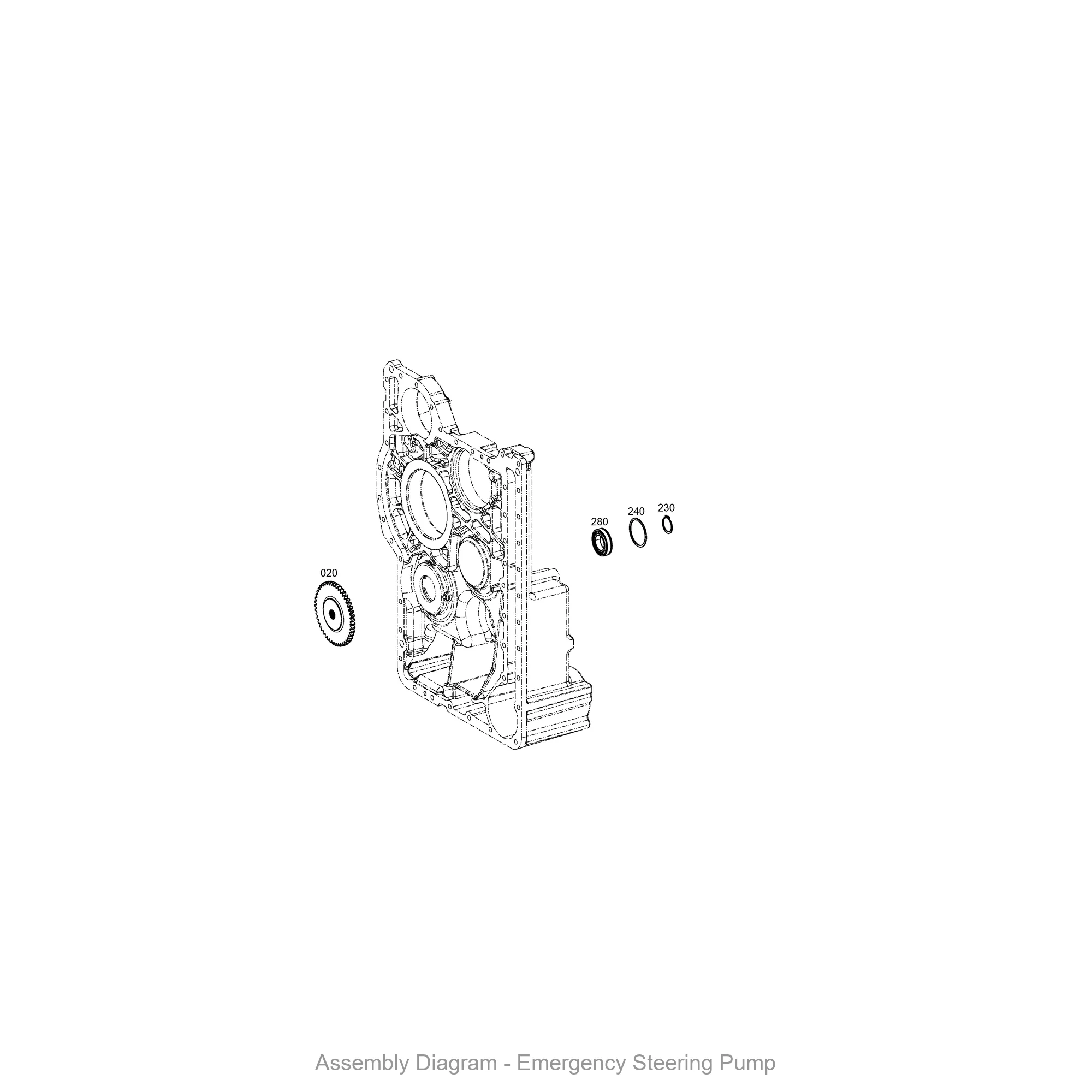 This emergency steering pump is located in the emergency steering pump area of the transmission. It appears in 30 different assembly configurations.