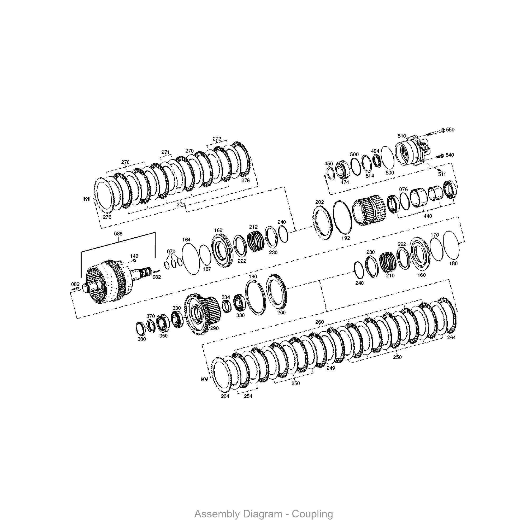 This coupling is located in the coupling area of the transmission. It appears in 24 different assembly configurations.