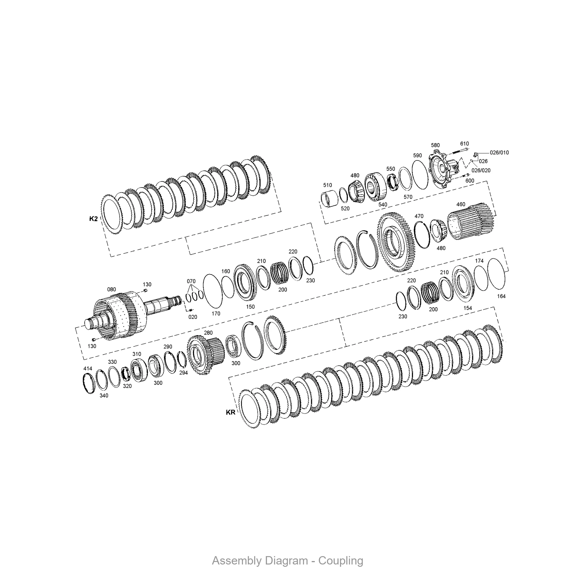 ZF 4646.152.025 is an OEM coupling produced by ZF Friedrichshafen AG, one of the world’s largest automotive suppliers. It is designed for use in ZF powershift transmissions, specifically in models such as 4 WG 260. This is a genuine ZF component, not an aftermarket reproduction.