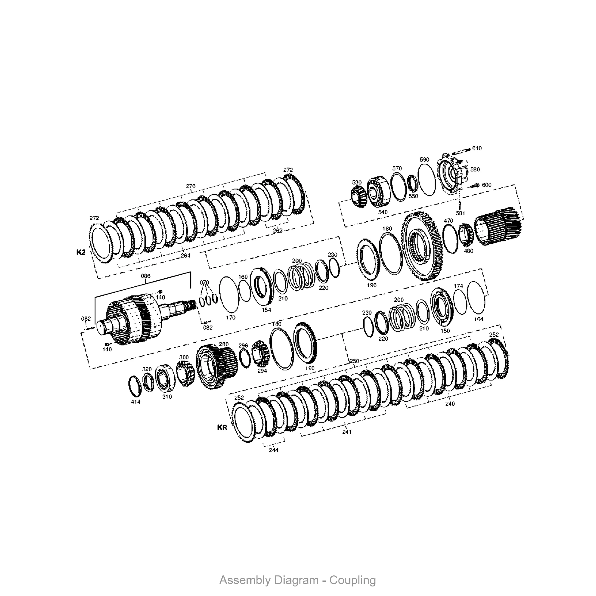 This coupling is located in the coupling area of the transmission. It appears in 20 different assembly configurations.