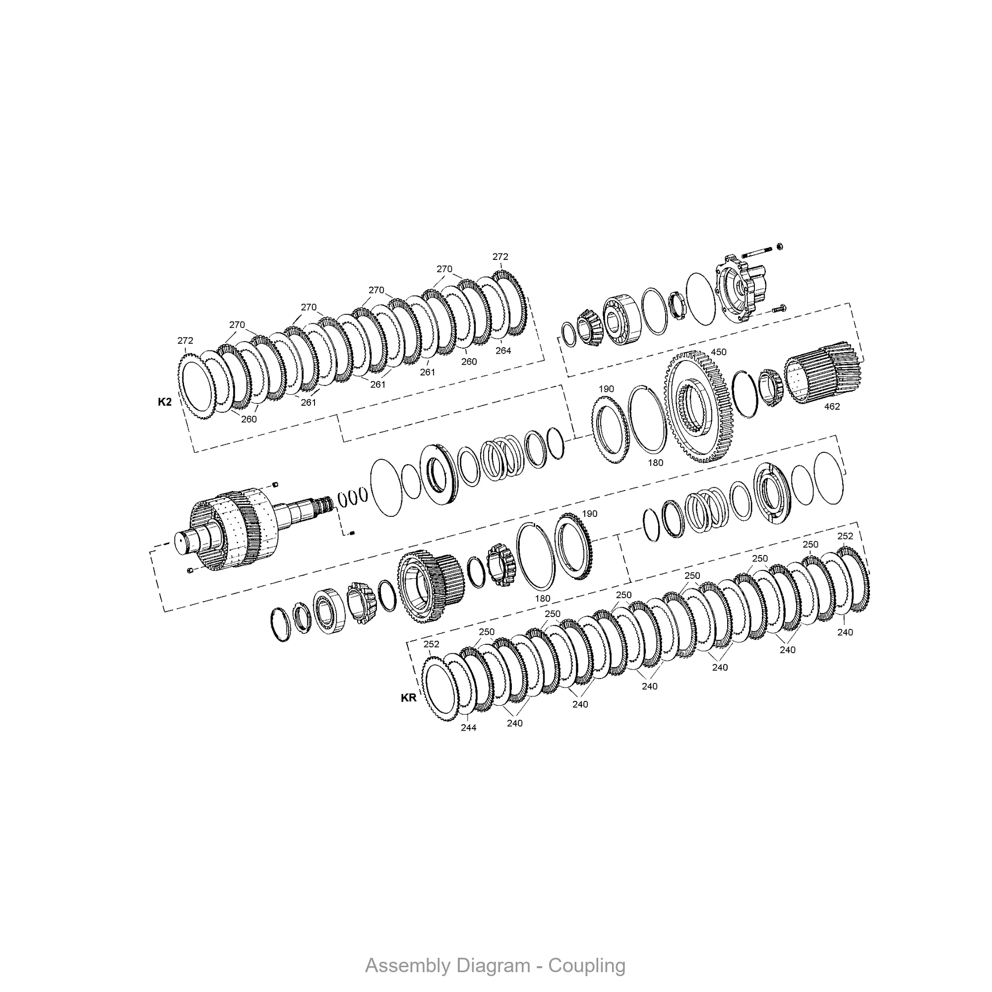 This coupling is found in 2 ZF transmission variants, including: 3 WG 310, 4 WG 310. These transmissions are commonly used in wheel loaders, graders, and other heavy construction equipment. Contact us to verify fitment for your specific machine.