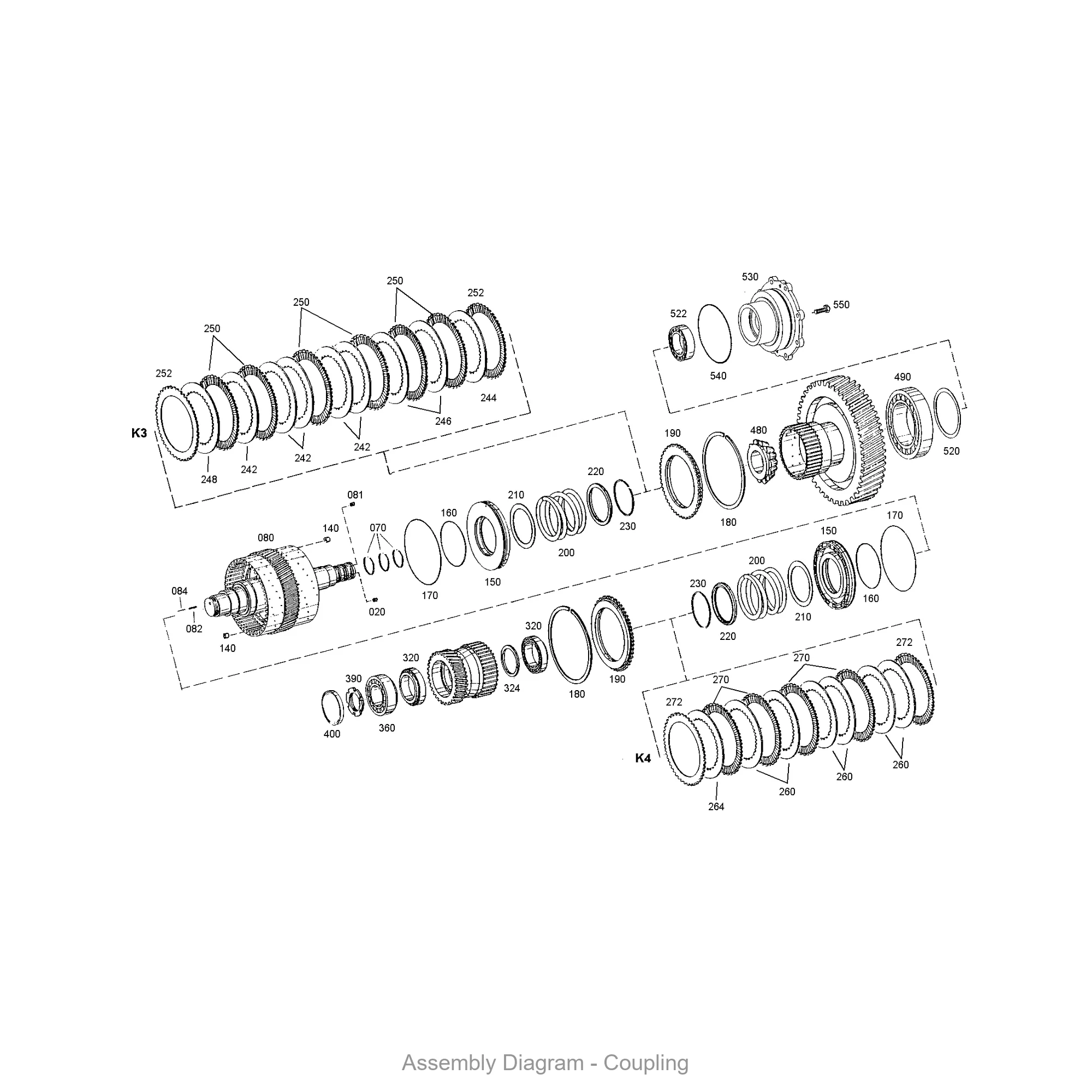 This coupling is found in 1 ZF transmission variants, including: 4 WG 260(2). These transmissions are commonly used in wheel loaders, graders, and other heavy construction equipment. Contact us to verify fitment for your specific machine.