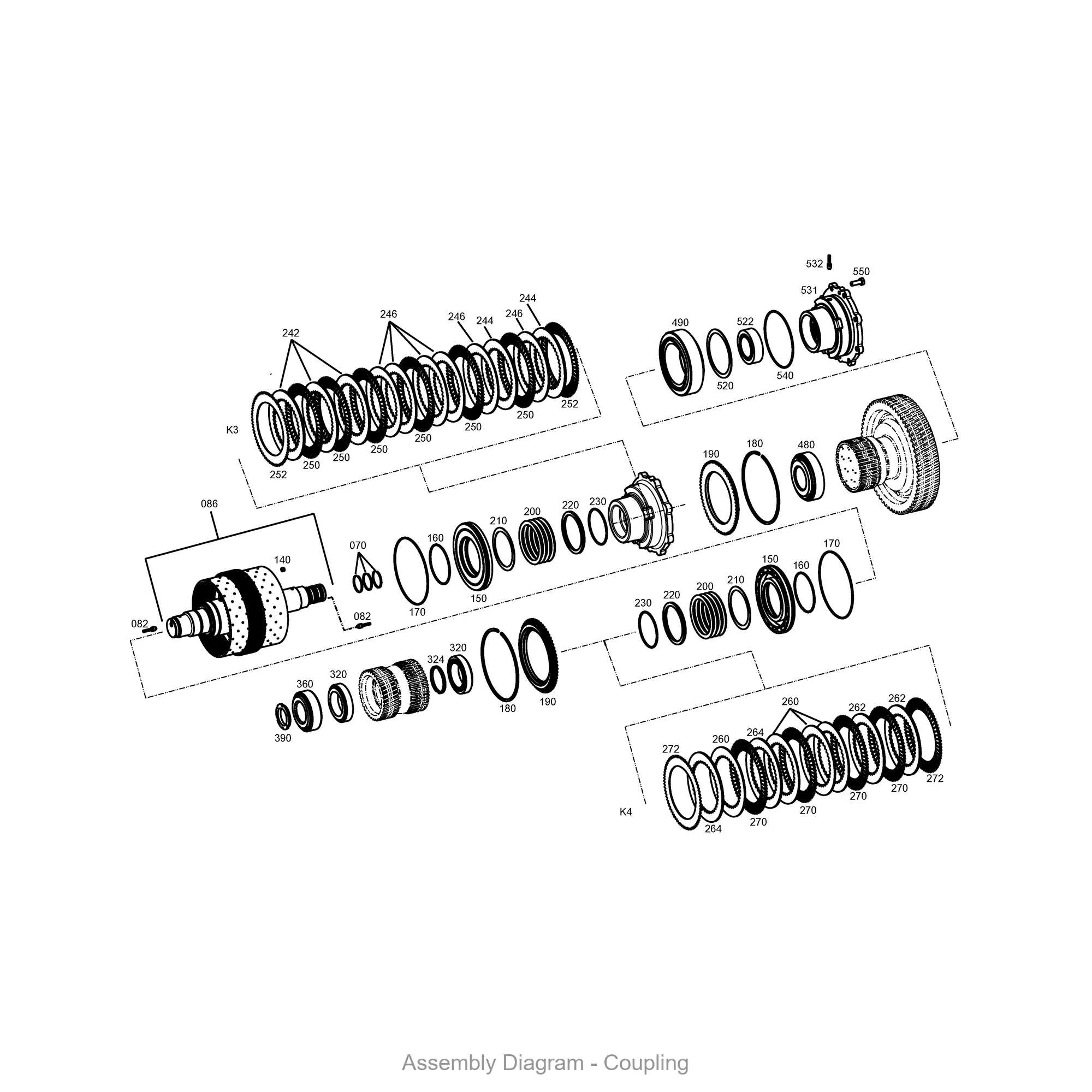 This coupling is found in 4 ZF transmission variants, including: 3 WG 260, 4 WG 261, 4 WG 261(4), 5 WG 261. These transmissions are commonly used in wheel loaders, graders, and other heavy construction equipment. Contact us to verify fitment for your specific machine.