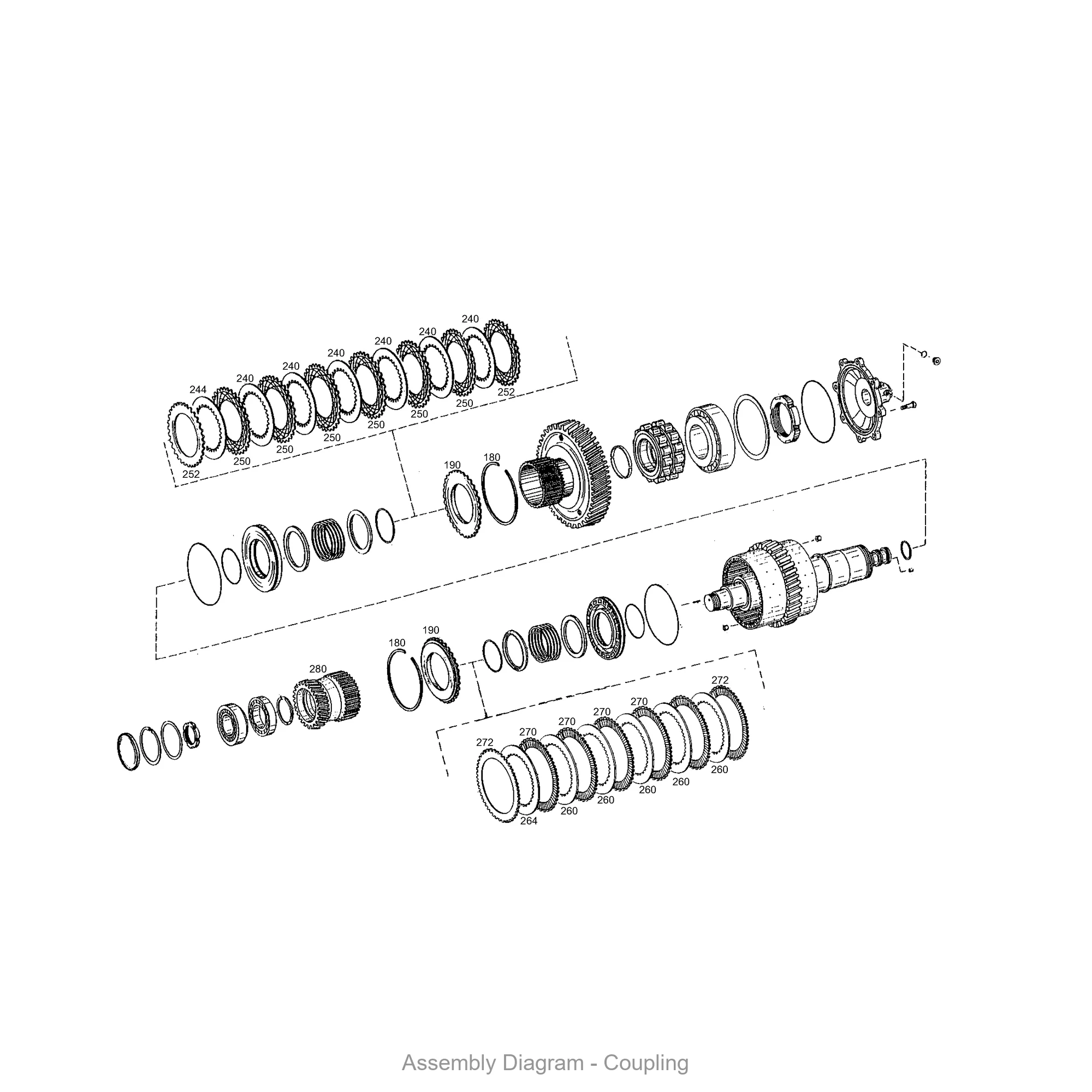 This coupling is found in 1 ZF transmission variants, including: 4 WG 260. These transmissions are commonly used in wheel loaders, graders, and other heavy construction equipment. Contact us to verify fitment for your specific machine.