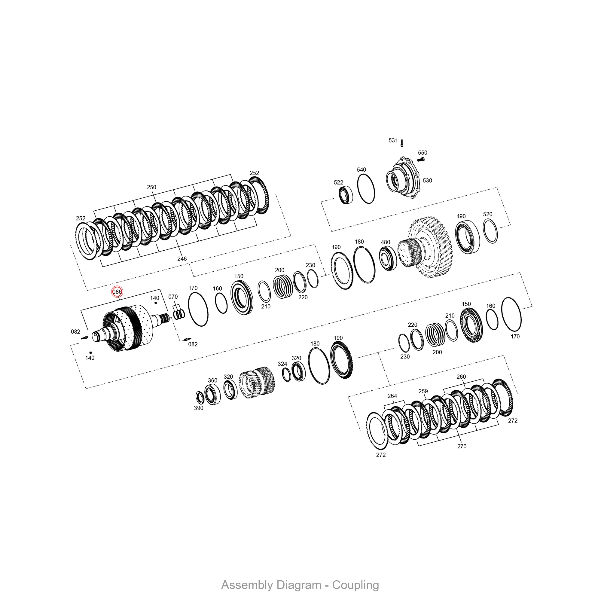 This disc carrier is located in the coupling area of the transmission. It appears in 30 different assembly configurations. In the service manual, look for position number 086 in the Coupling section.