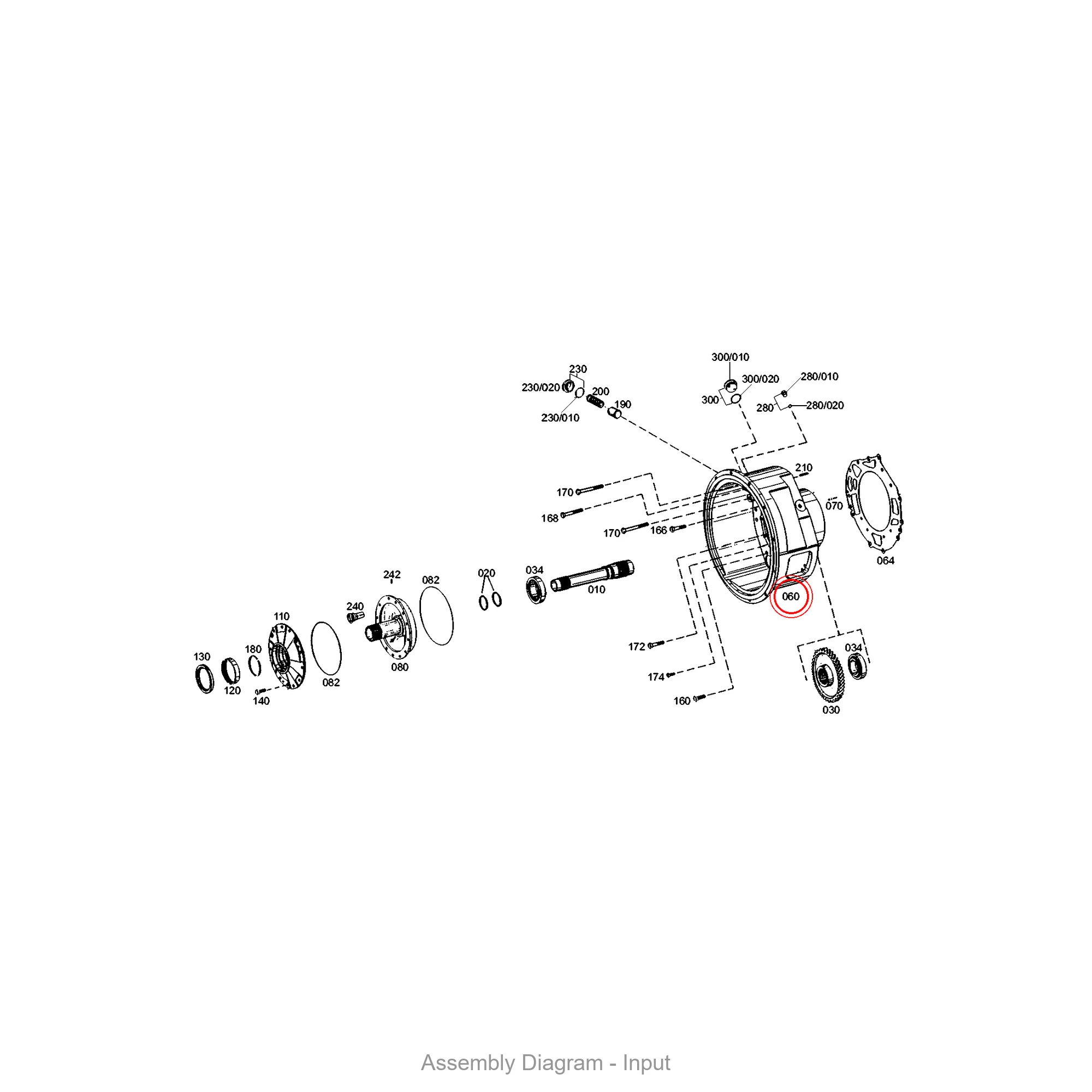 This converter bell is located in the input area of the transmission. It appears in 1 different assembly configurations. In the service manual, look for position number 060 in the Input section.