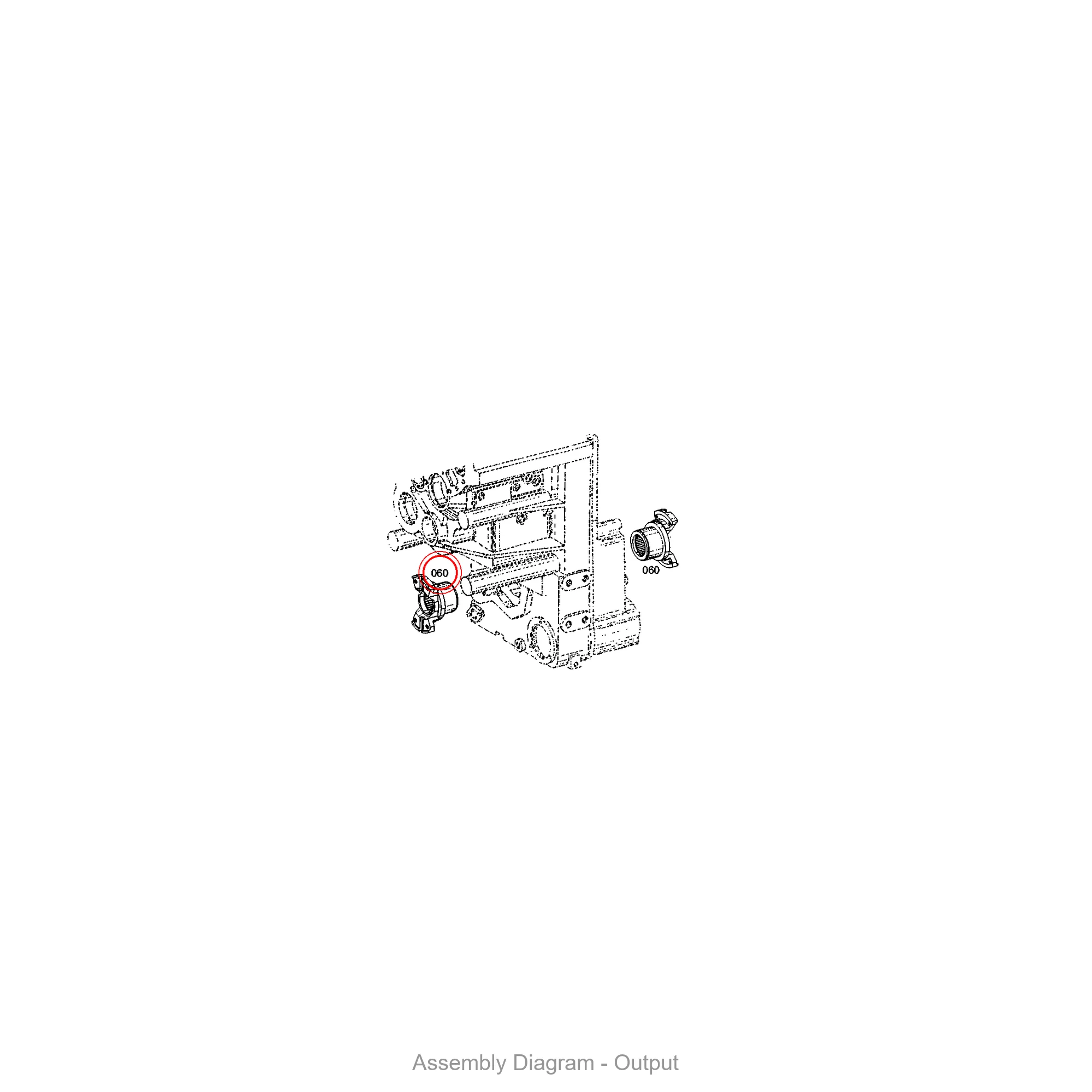 This output flange is located in the output area of the transmission. It appears in 4 different assembly configurations. In the service manual, look for position number 060 in the Output section.
