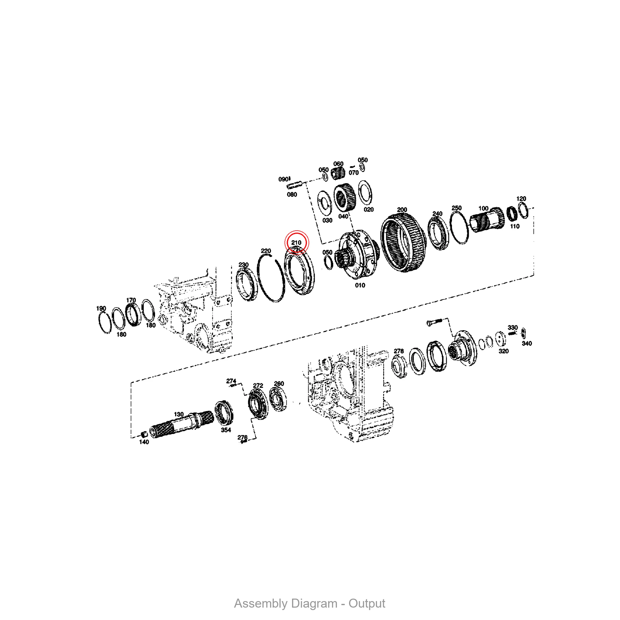 This ring gear carrier is located in the differential, output area of the transmission. It appears in 30 different assembly configurations. In the service manual, look for position number 210 in the Crawler section.