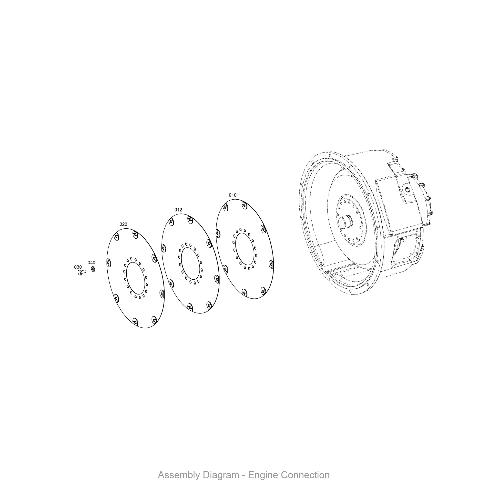 This diaphragm is located in the engine connection area of the transmission. It appears in 16 different assembly configurations. In the service manual, look for position number 012 in the Engine Connection section.