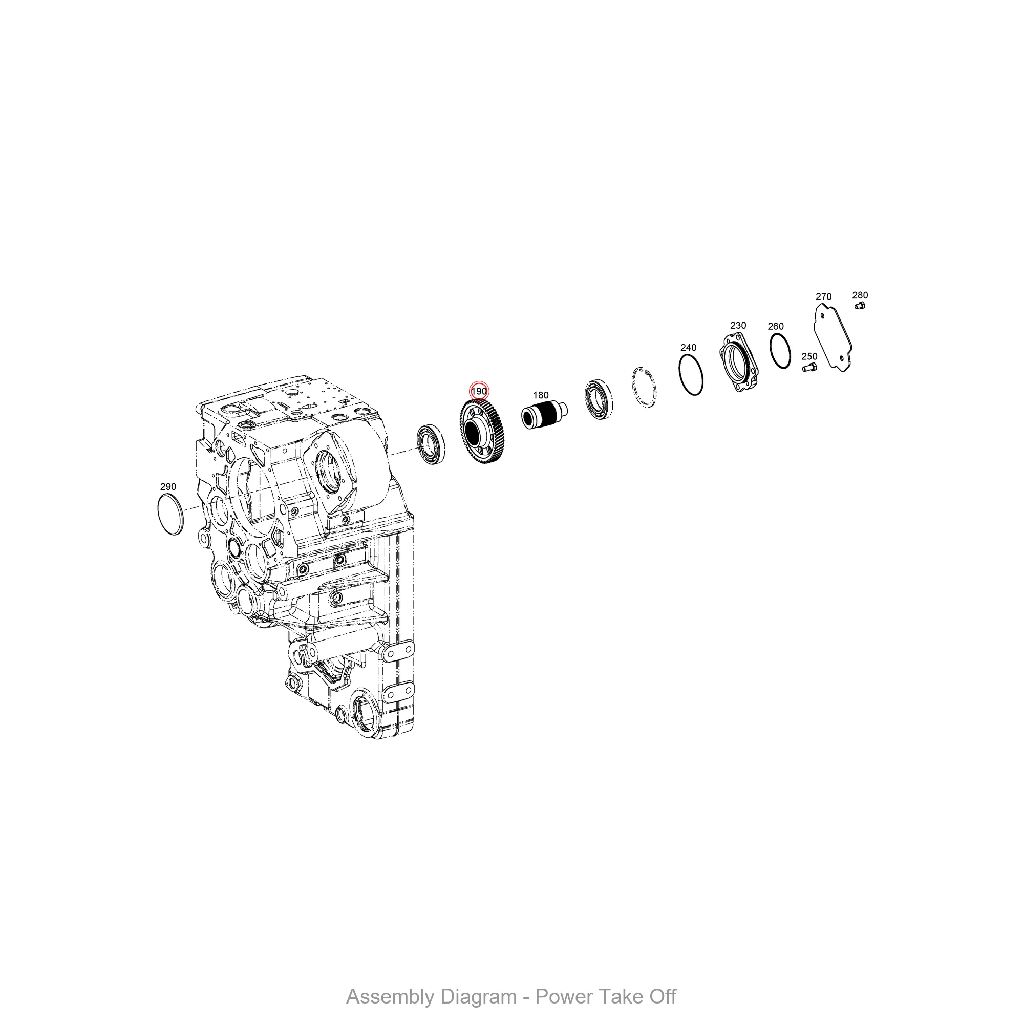 This gear is located in the power take off area of the transmission. It appears in 16 different assembly configurations. In the service manual, look for position number 190 in the Power Take Off section.