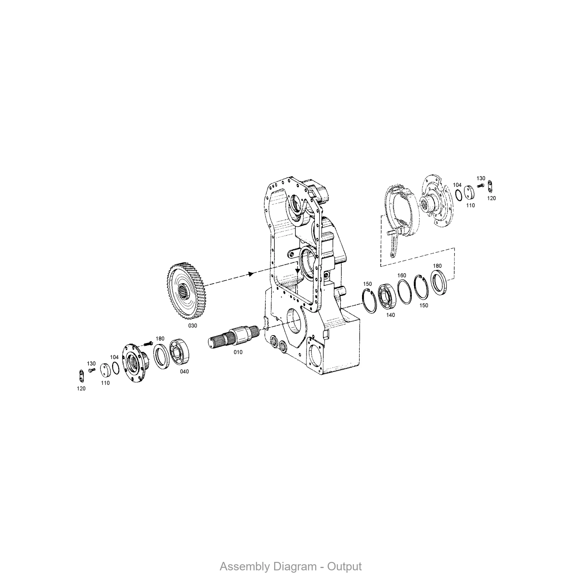 This output is found in 5 ZF transmission variants, including: 4 WG 100(500), 4 WG 110, 4 WG 110(500), 6 WG 110, 6 WG 110(500). These transmissions are commonly used in wheel loaders, graders, and other heavy construction equipment. Contact us to verify fitment for your specific machine.