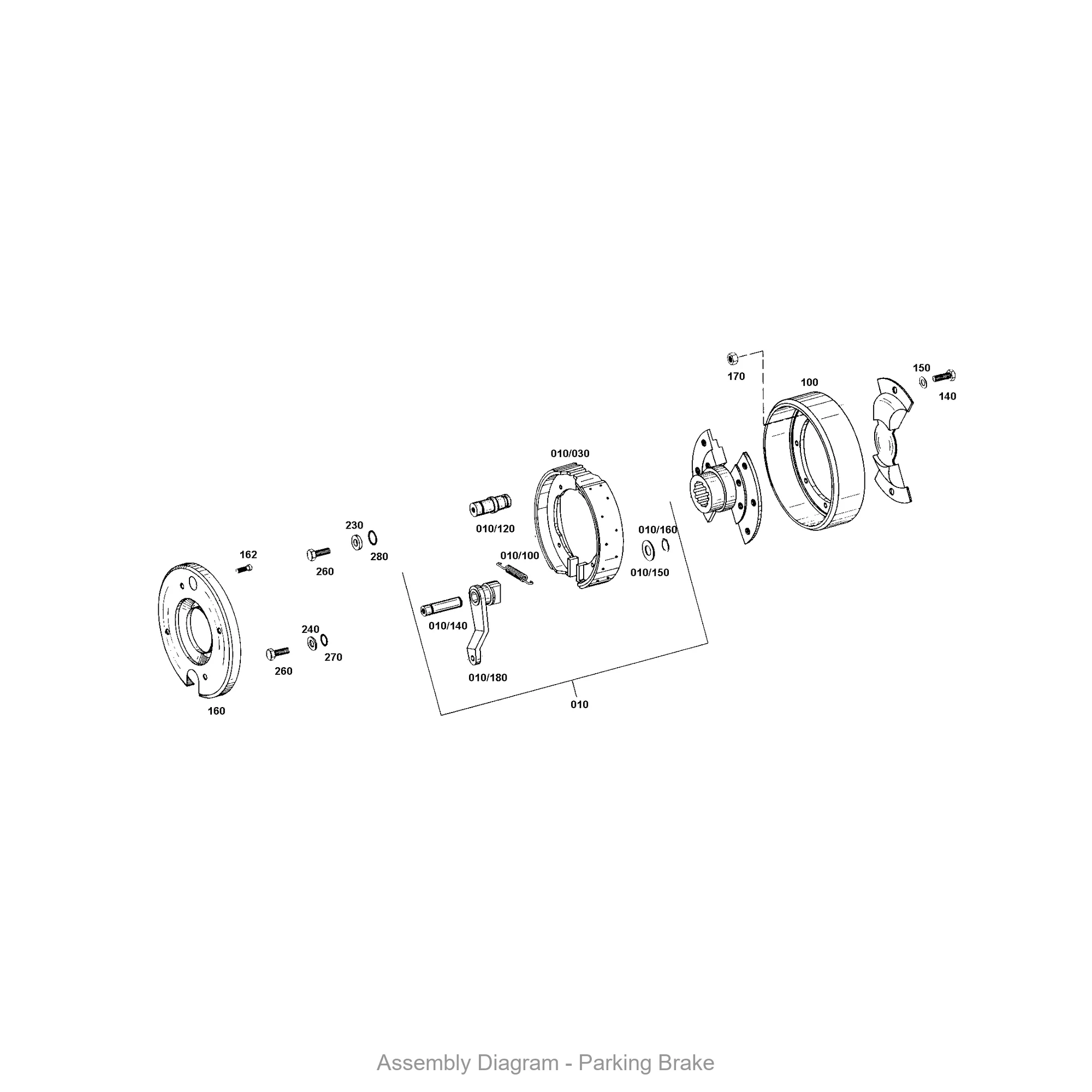This parking brake is located in the parking brake area of the transmission. It appears in 14 different assembly configurations.