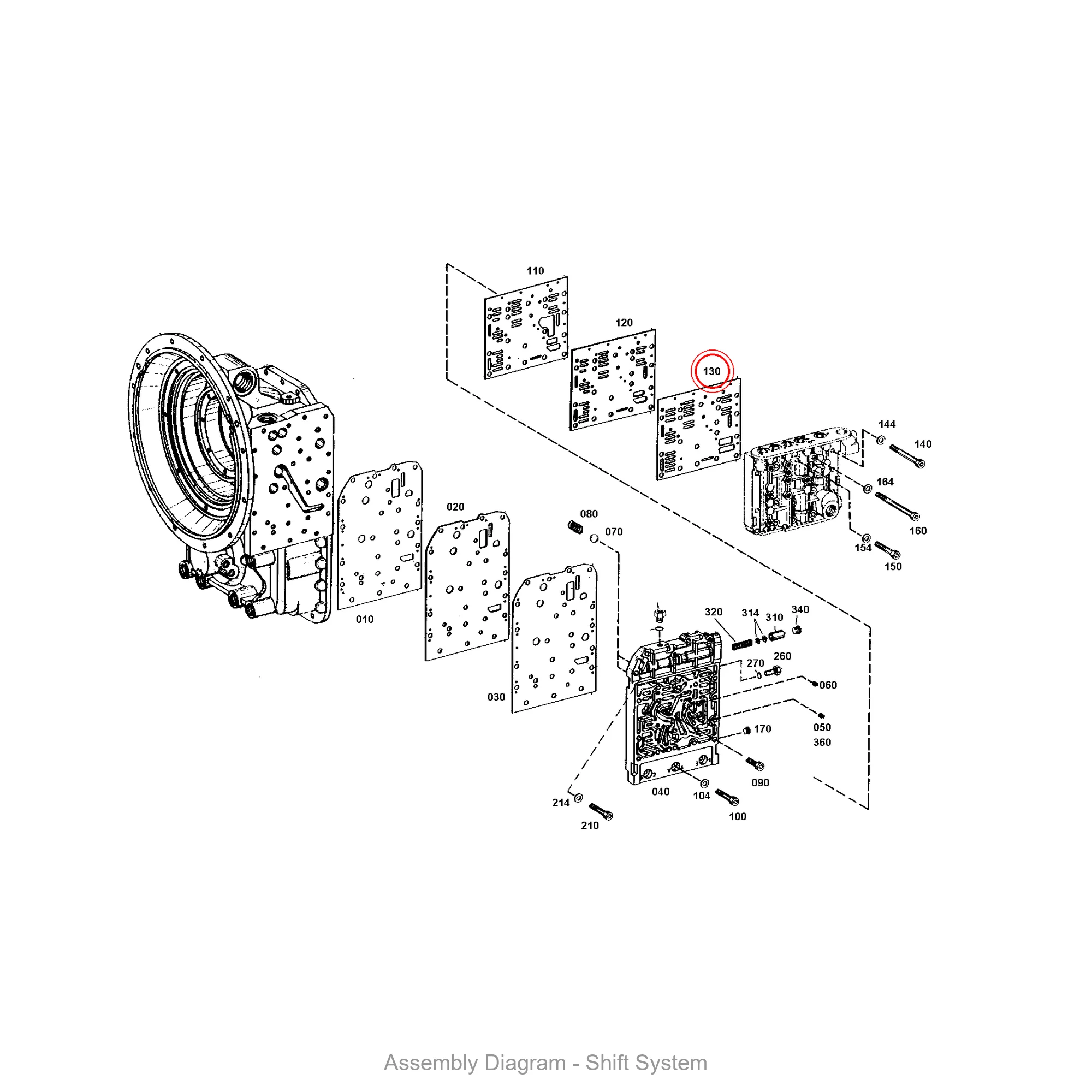 This gasket is located in the shift system area of the transmission. It appears in 4 different assembly configurations. In the service manual, look for position number 130 in the Shift System section.