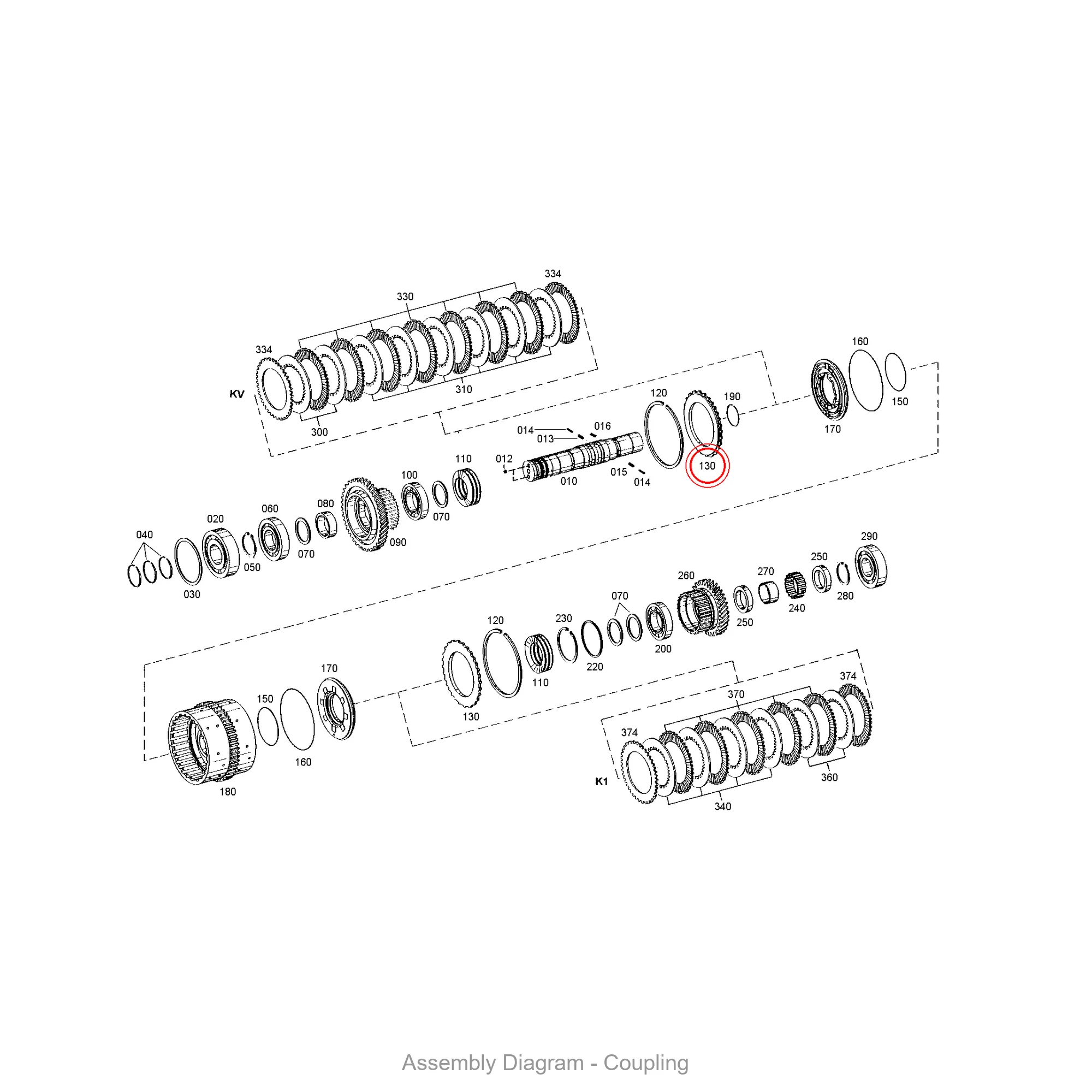 This end shim is located in the coupling area of the transmission. It appears in 10 different assembly configurations. In the service manual, look for position number 130 in the Coupling section.