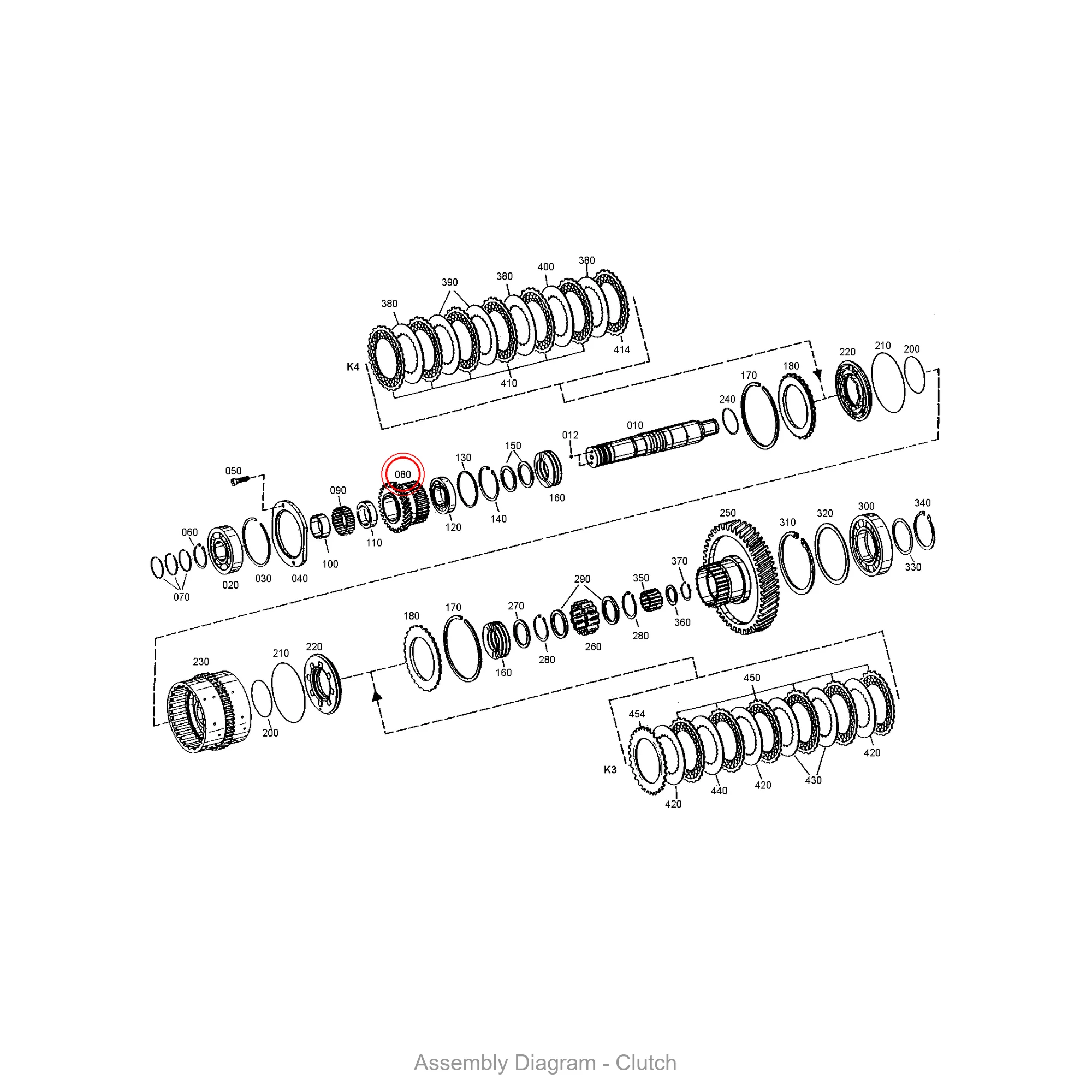 This spur gear is located in the clutch, coupling area of the transmission. It appears in 30 different assembly configurations. In the service manual, look for position number 080 in the Clutch section.