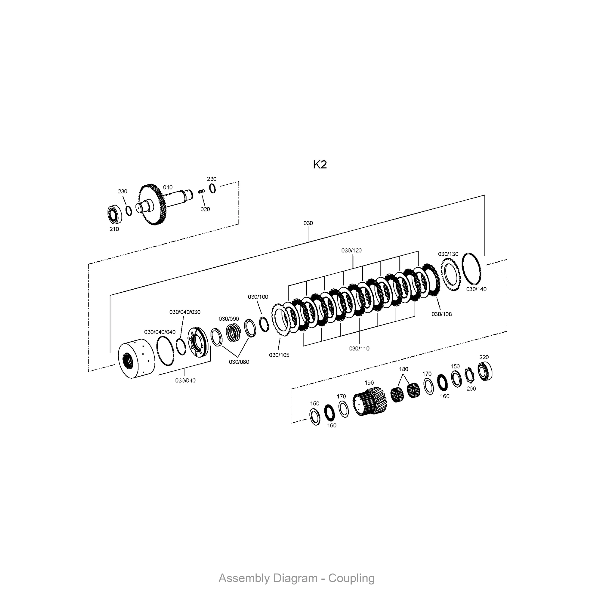 This coupling is located in the coupling, wg 160 area of the transmission. It appears in 30 different assembly configurations. In the service manual, look for position number 360 in the Wg 160 section.