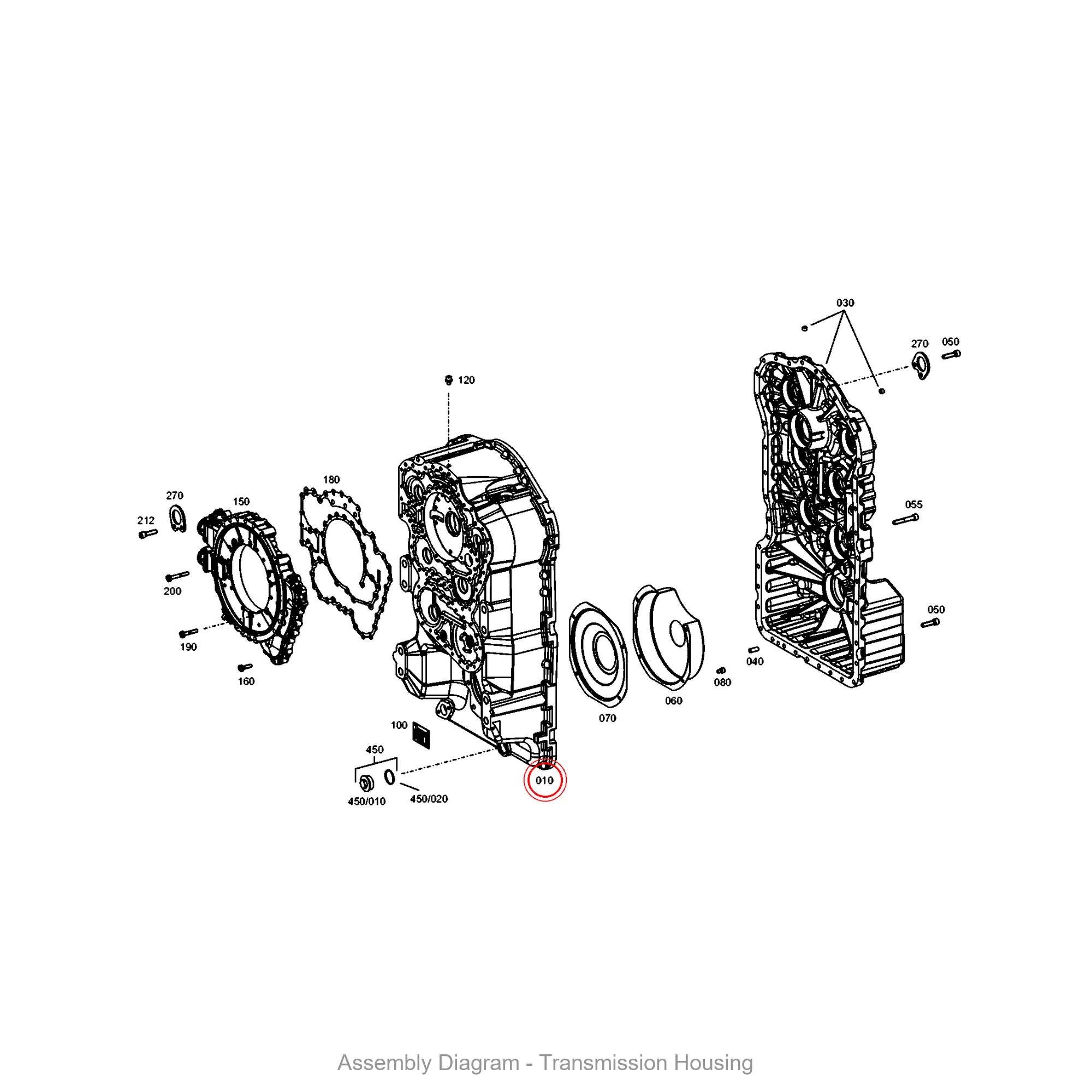 This hous.front sect is found in 2 ZF transmission variants, including: 4 WG 115, 6 WG 115. These transmissions are commonly used in wheel loaders, graders, and other heavy construction equipment. Contact us to verify fitment for your specific machine.