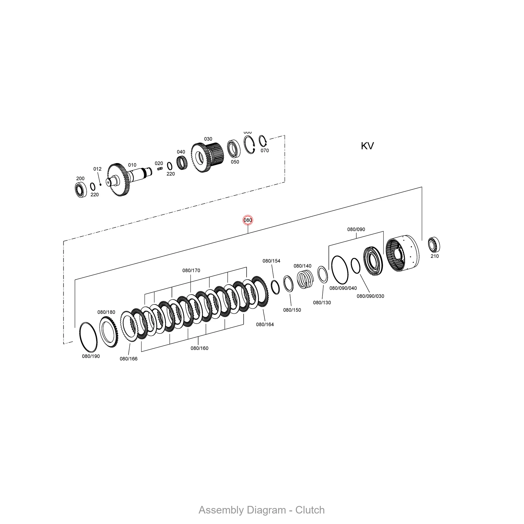 This coupling is located in the clutch area of the transmission. It appears in 15 different assembly configurations. In the service manual, look for position number 080 in the Clutch section.