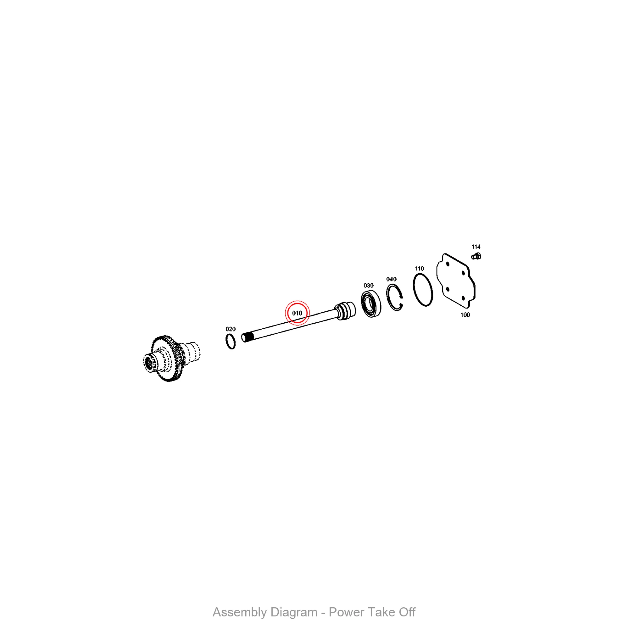 This pump shaft is located in the power take off area of the transmission. It appears in 30 different assembly configurations. In the service manual, look for position number 010 in the Power Take Off section.