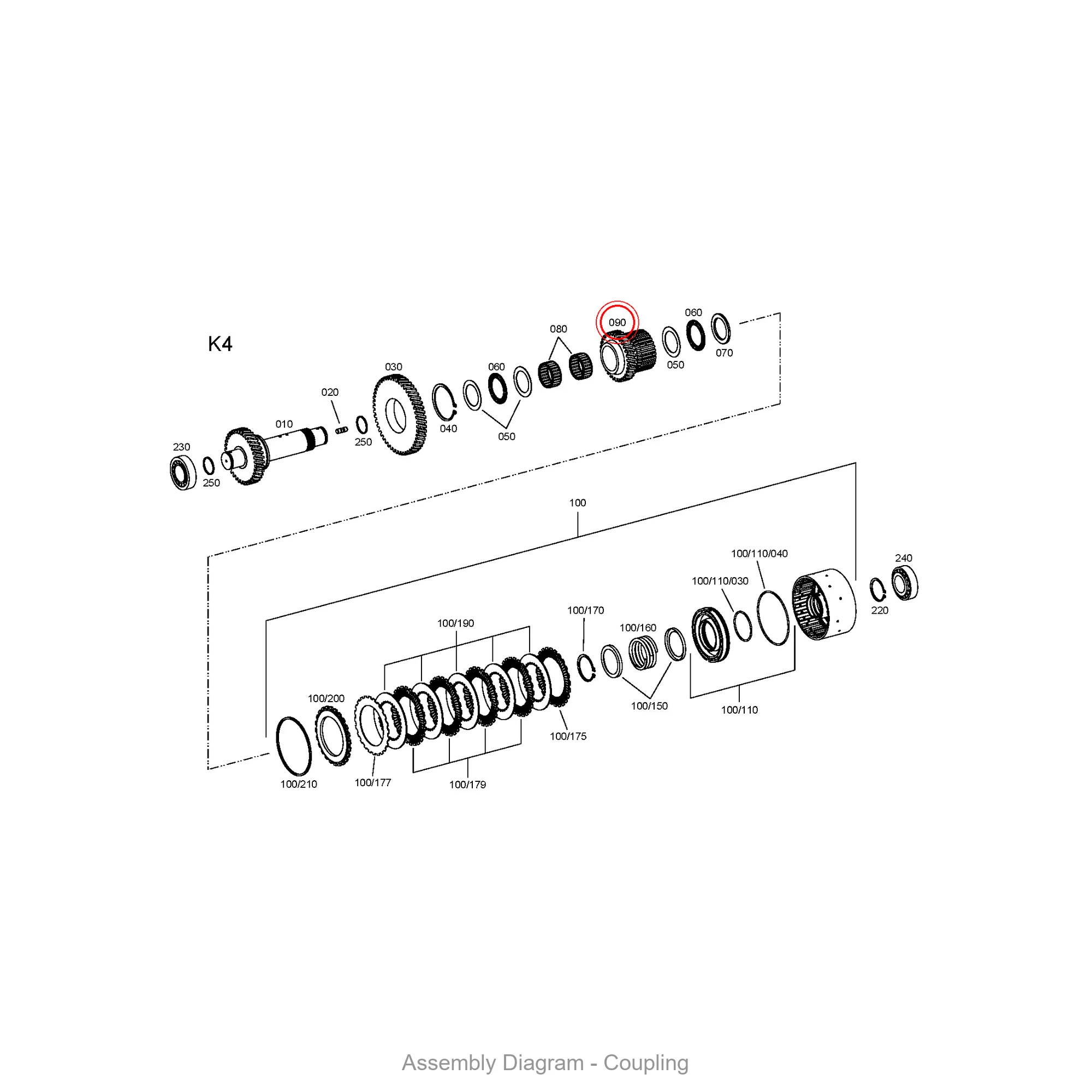 This idler is located in the coupling area of the transmission. It appears in 30 different assembly configurations. In the service manual, look for position number 090 in the Coupling section.