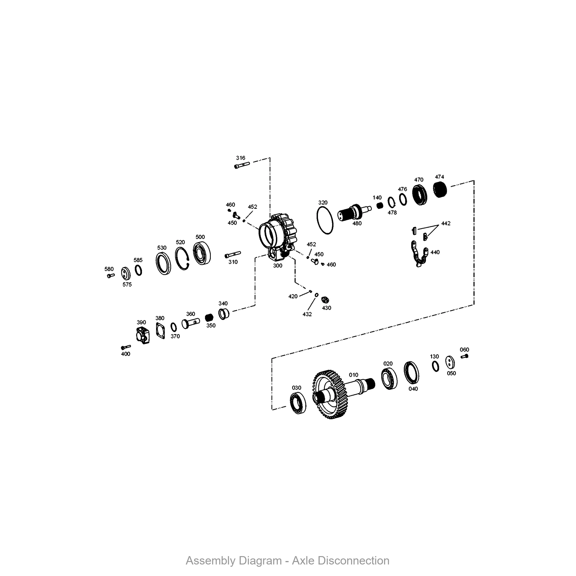 This axle disconnection is located in the axle disconnection, wg 190, wg 210 area of the transmission. It appears in 30 different assembly configurations. In the service manual, look for position number 050 in the Wg 190 section.