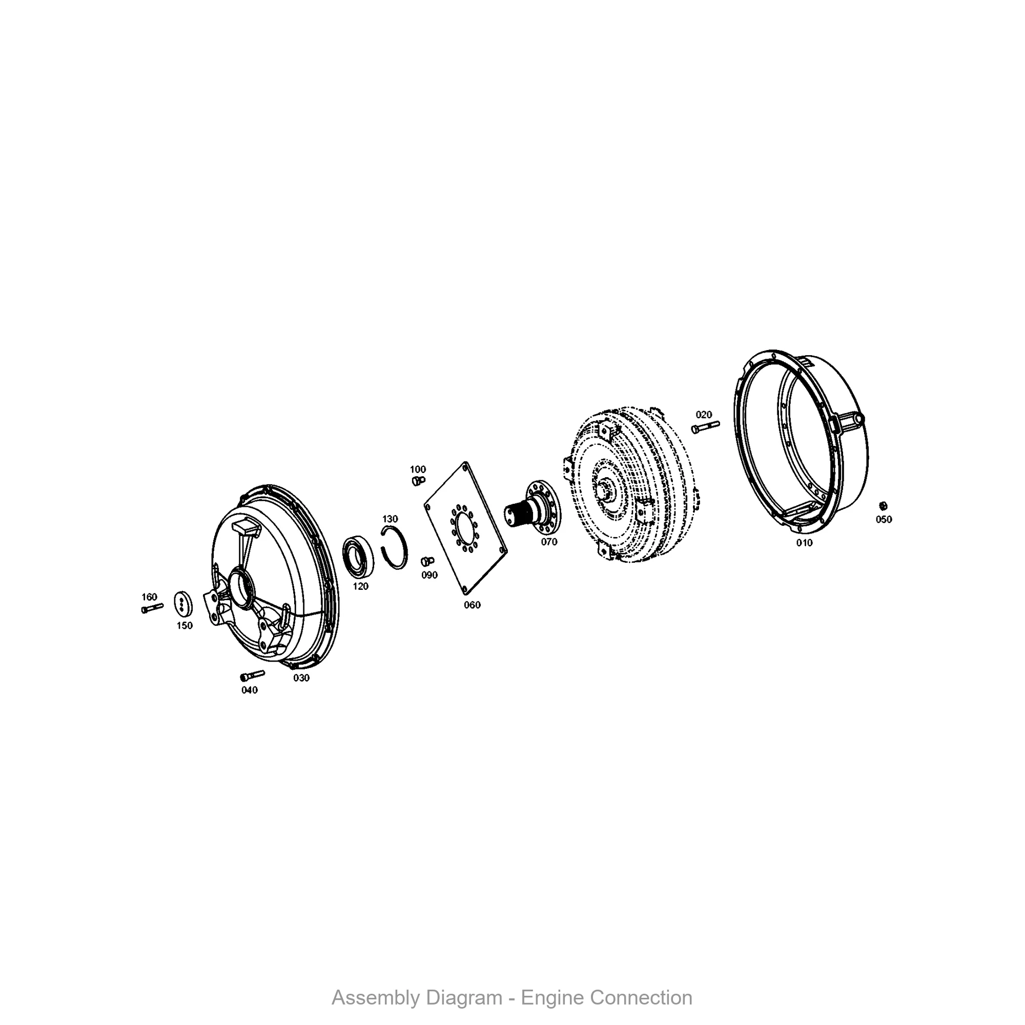 This engine connection is found in 6 ZF transmission variants, including: 3 WG 190, 5 WG 160, 6 WG 160, 6 WG 190, 6 WG 210, 8 WG 160. These transmissions are commonly used in wheel loaders, graders, and other heavy construction equipment. Contact us to verify fitment for your specific machine.