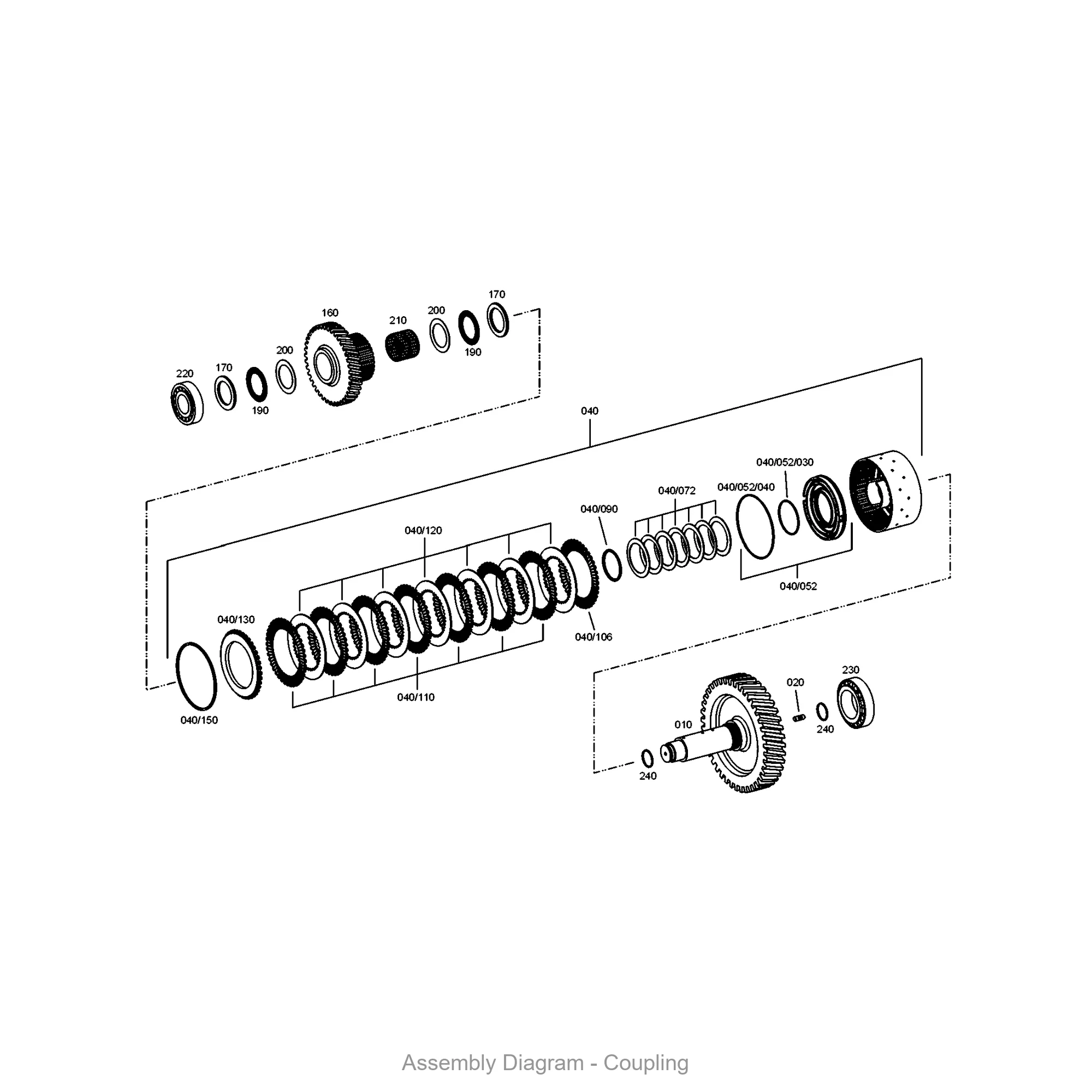 This coupling is found in 4 ZF transmission variants, including: 3 WG 190, 4 WG 190, 5 WG 190, 6 WG 190. These transmissions are commonly used in wheel loaders, graders, and other heavy construction equipment. Contact us to verify fitment for your specific machine.