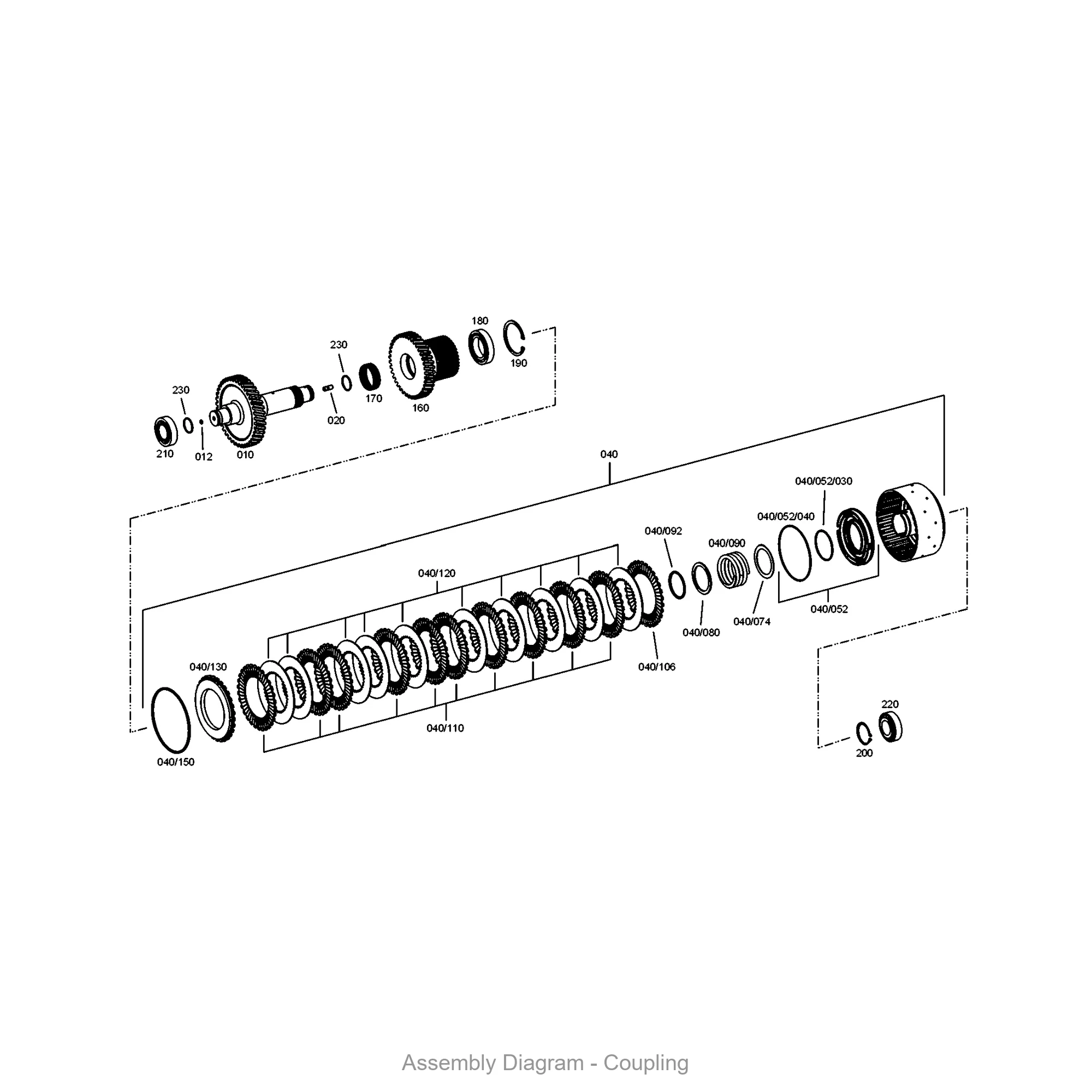 This coupling is found in 3 ZF transmission variants, including: 3 WG 190, 4 WG 190, 5 WG 190. These transmissions are commonly used in wheel loaders, graders, and other heavy construction equipment. Contact us to verify fitment for your specific machine.