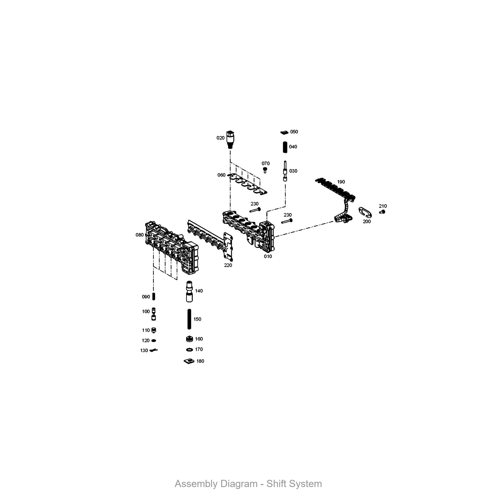 This control piston is located in the shift system area of the transmission. It appears in 11 different assembly configurations. In the service manual, look for position number 100 in the Shift System section.