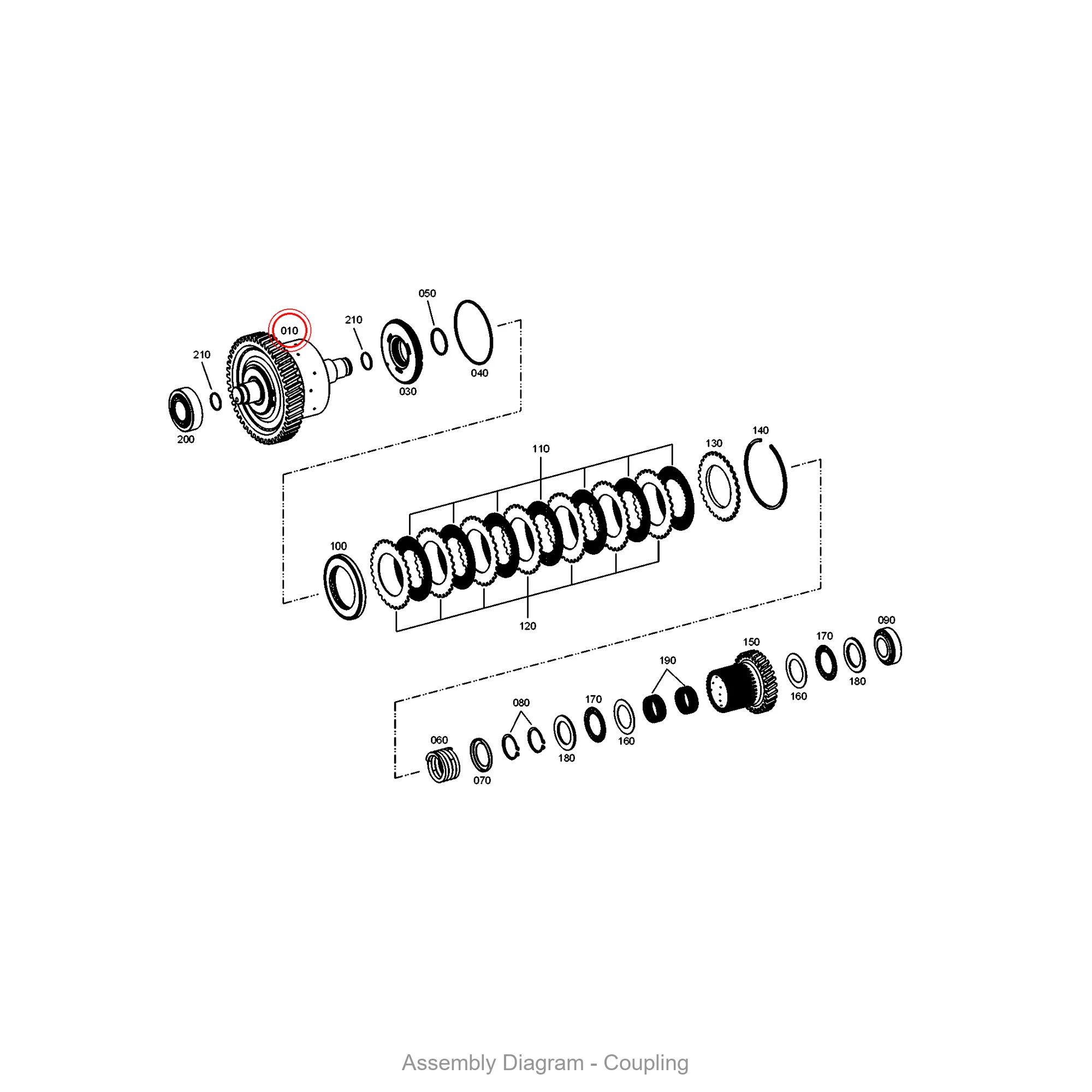 This clutch is located in the coupling area of the transmission. It appears in 30 different assembly configurations. In the service manual, look for position number 010 in the Coupling section.